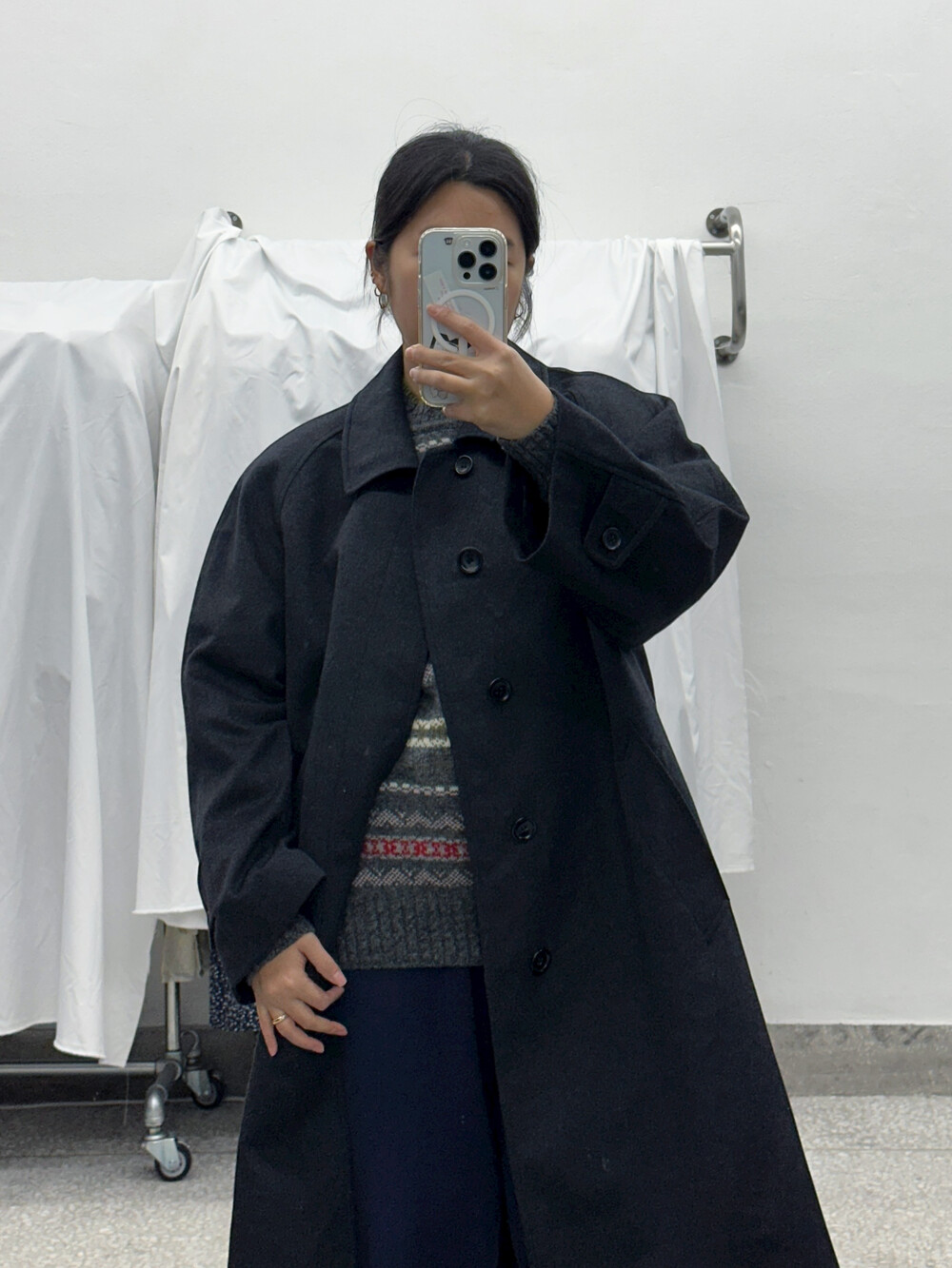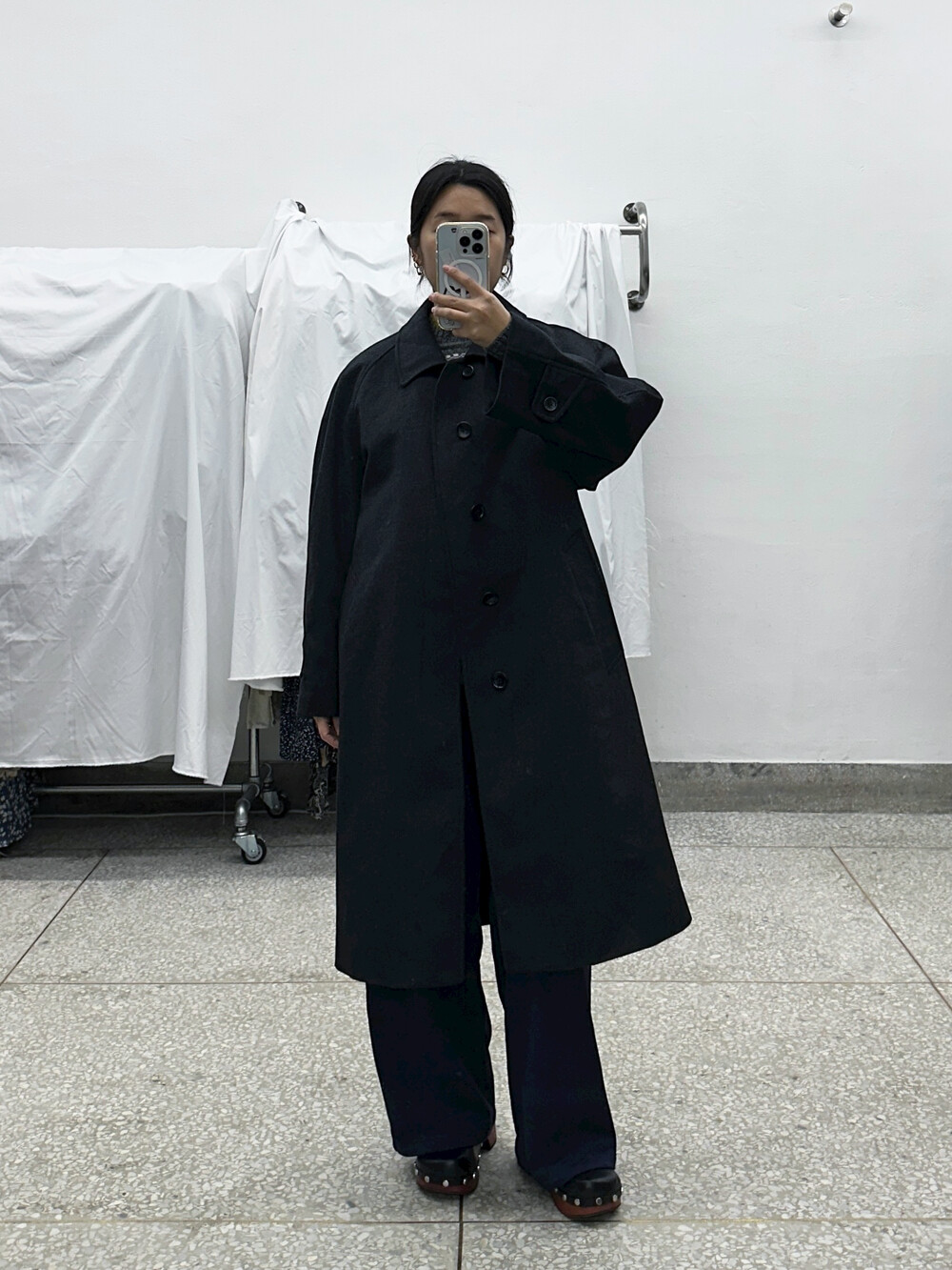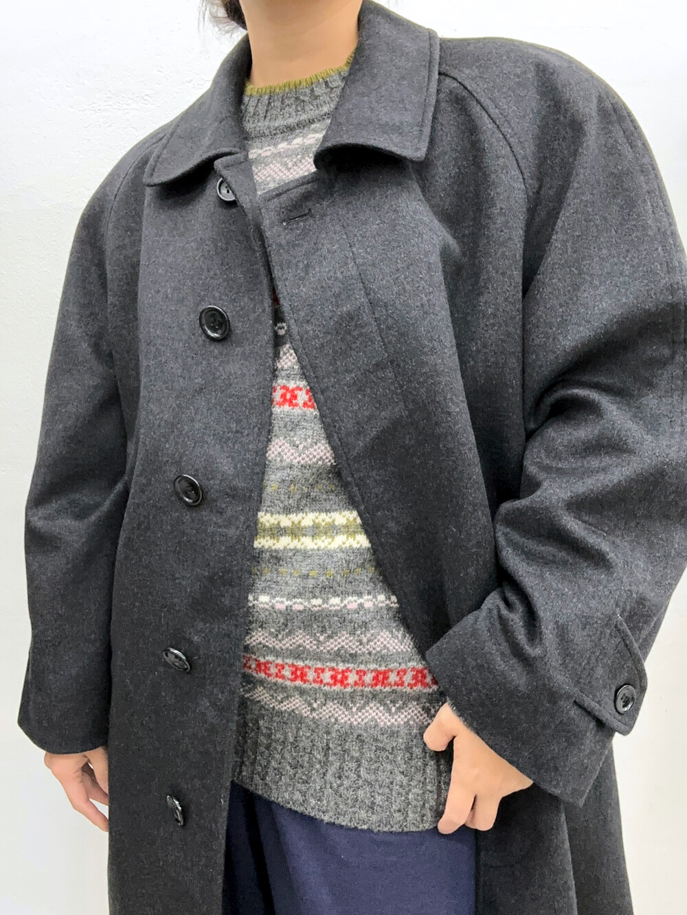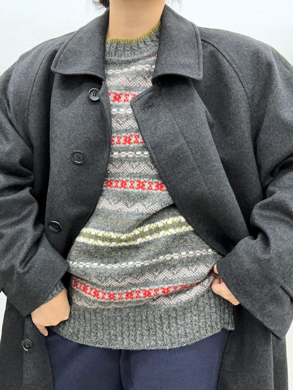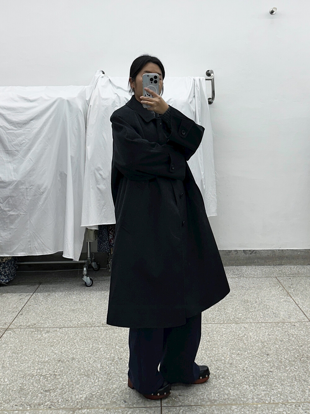 짙은 회색의 코트입니다.