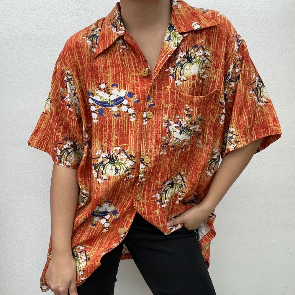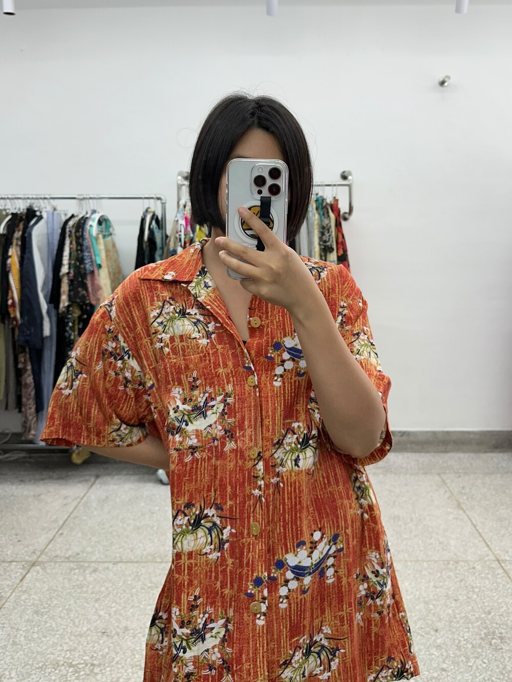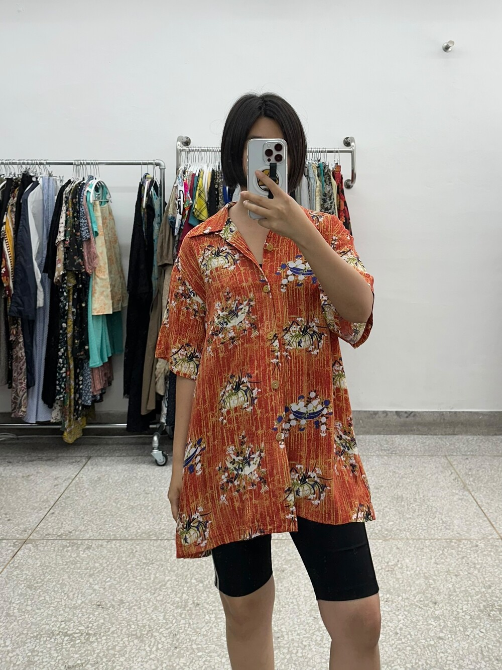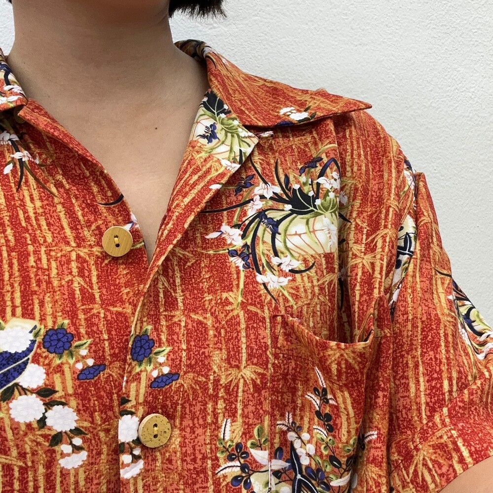 대나무로 만든 단추가 멋진 셔츠입니다.