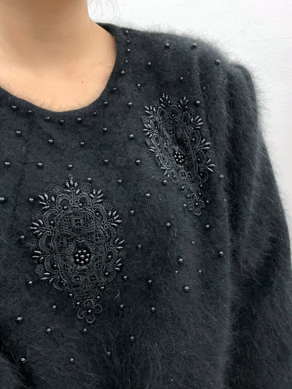 Black lace angora knit