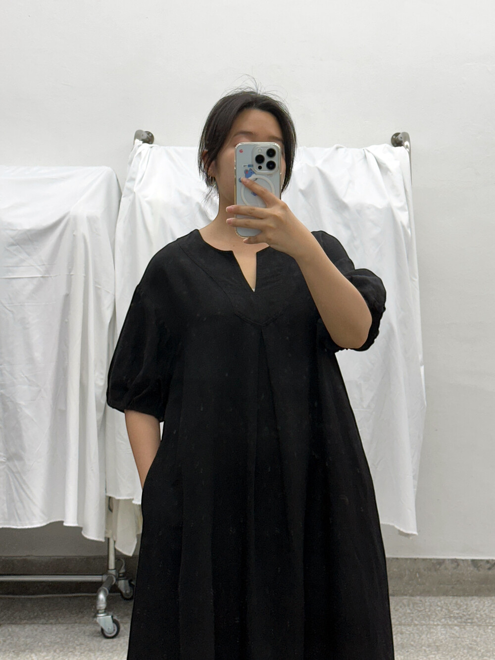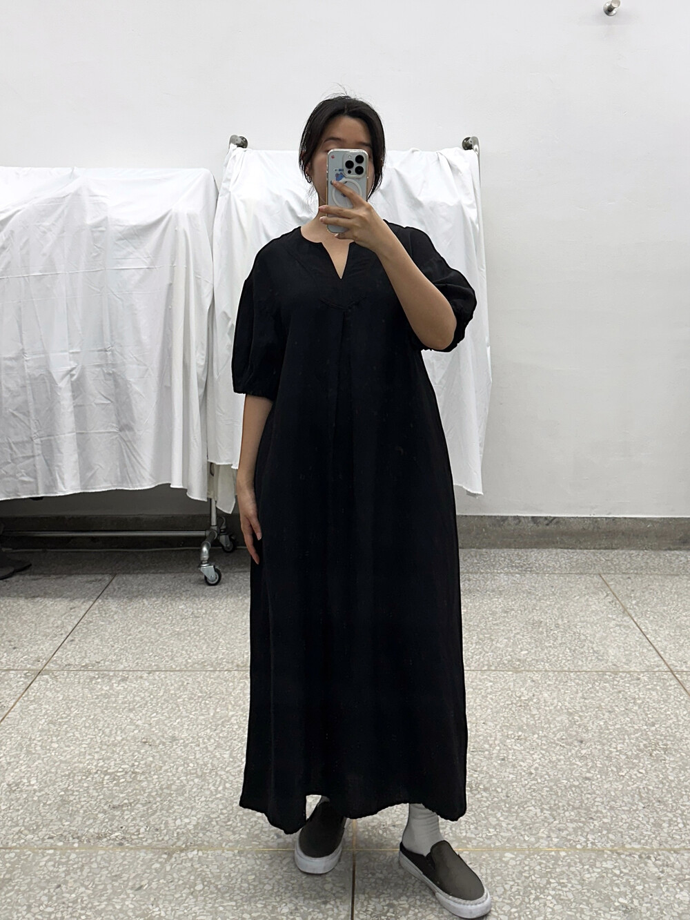 검정색상의 원피스입니다.