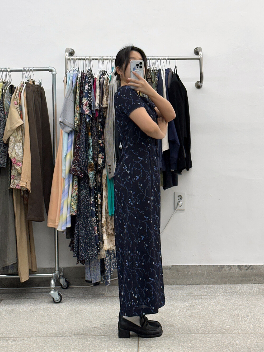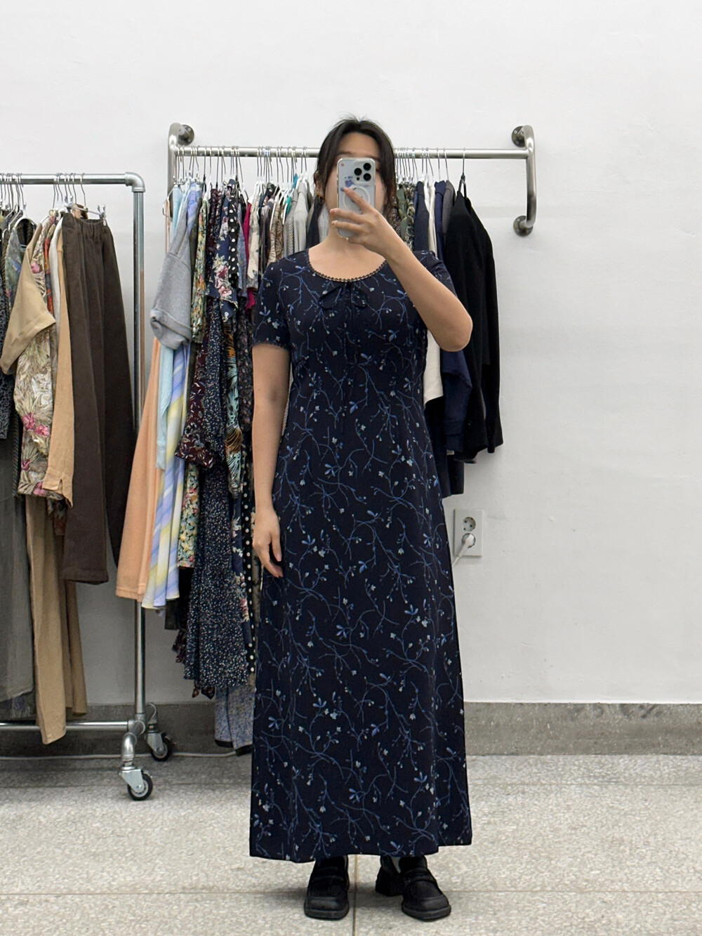 짙은 군청색에 푸른색 꽃패턴 더해진