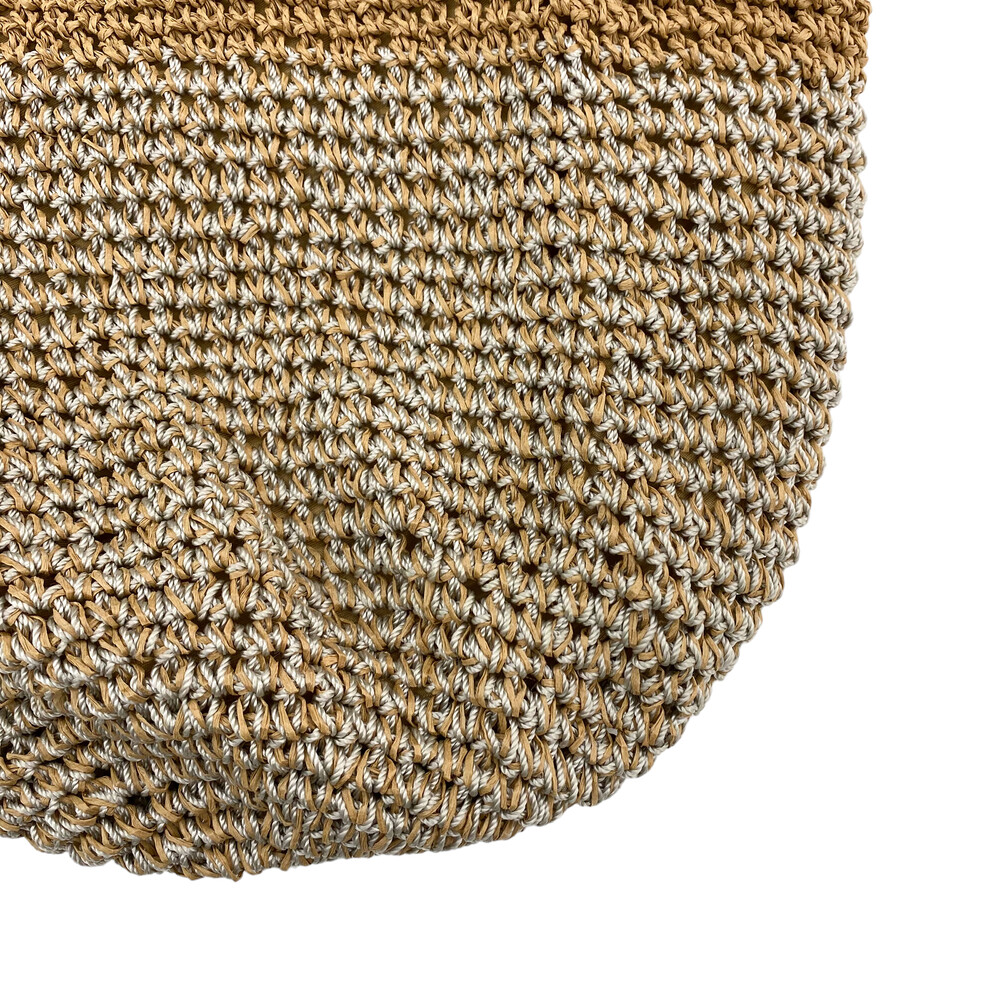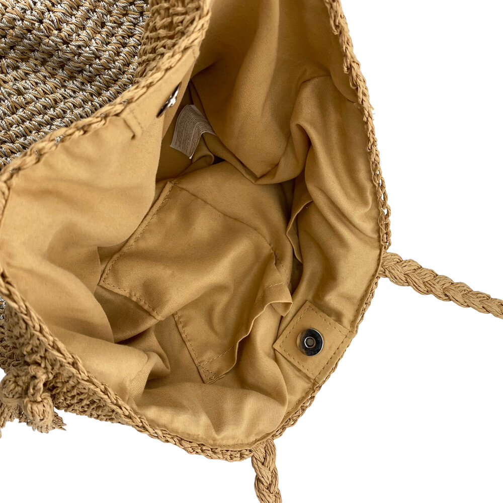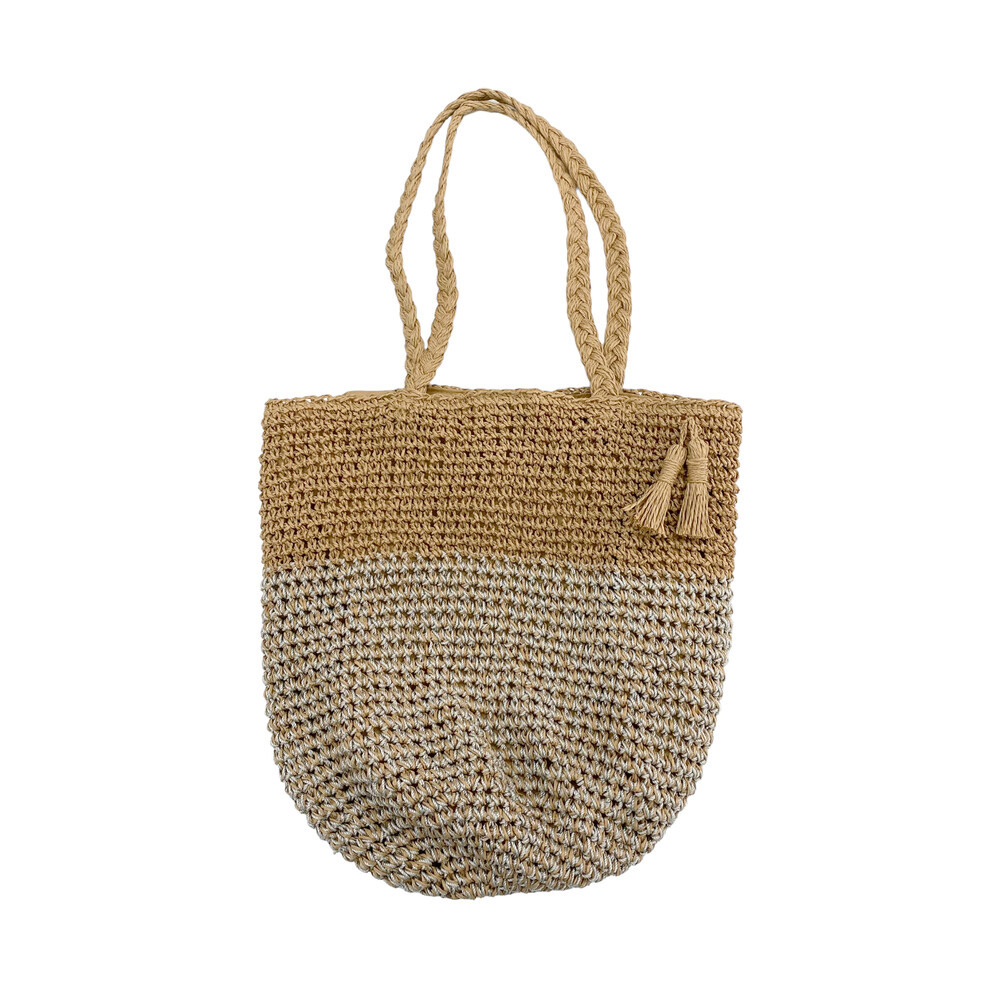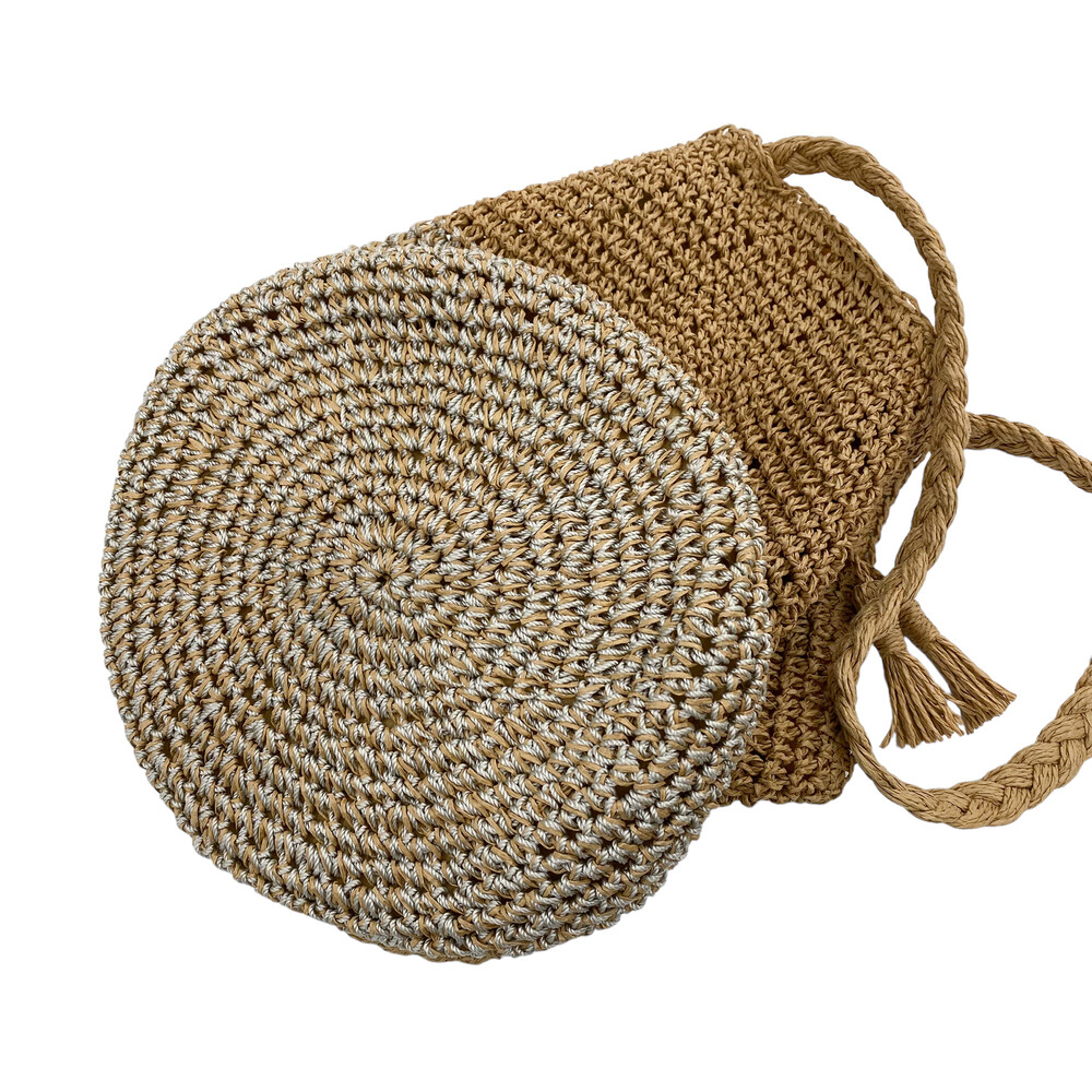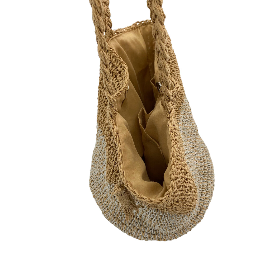 베이지색과 연한 회색 조합의 여름 가방입니다.