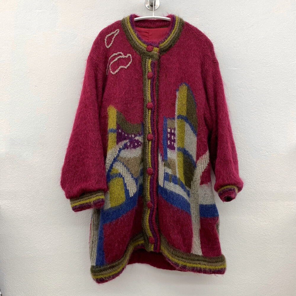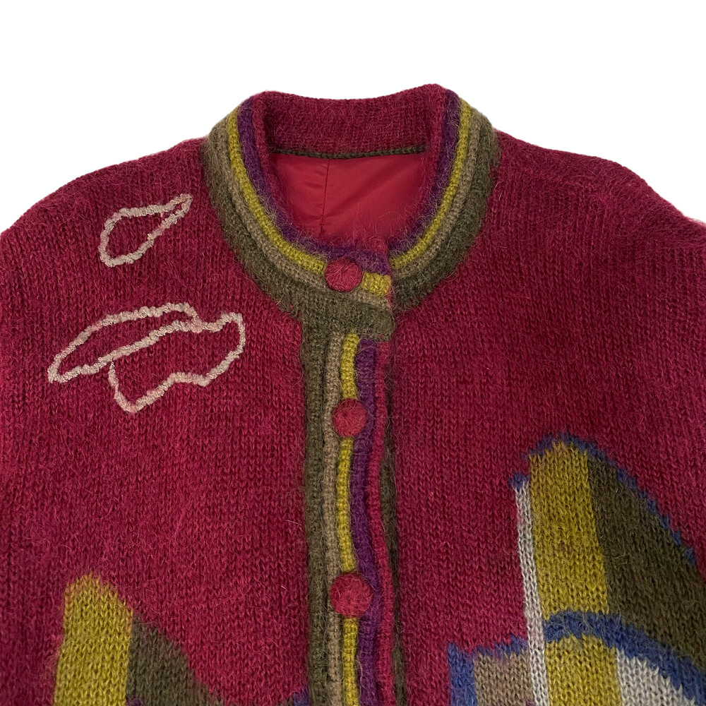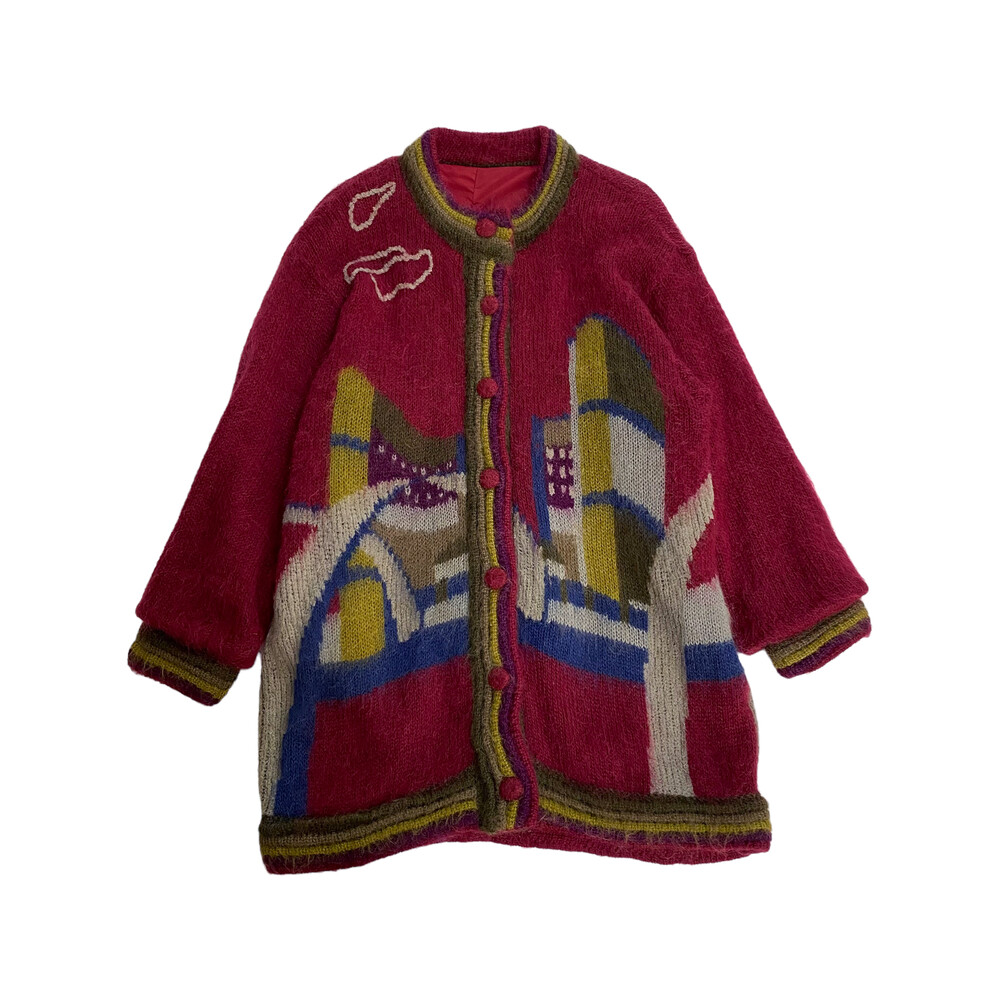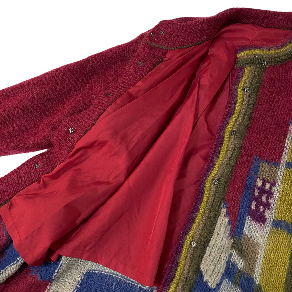 버건디 색상의 가디건입니다.