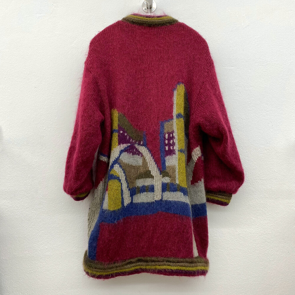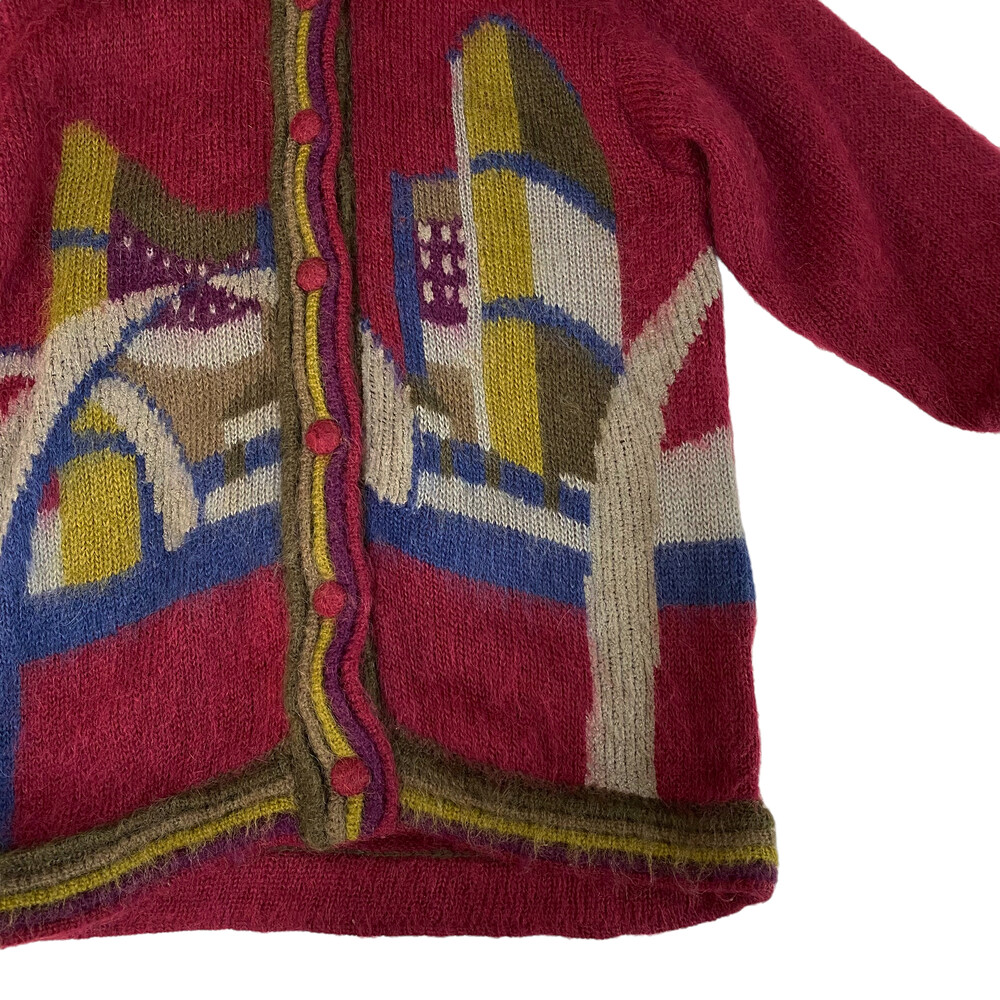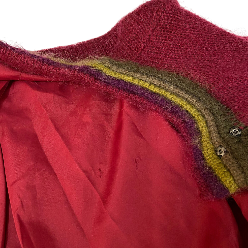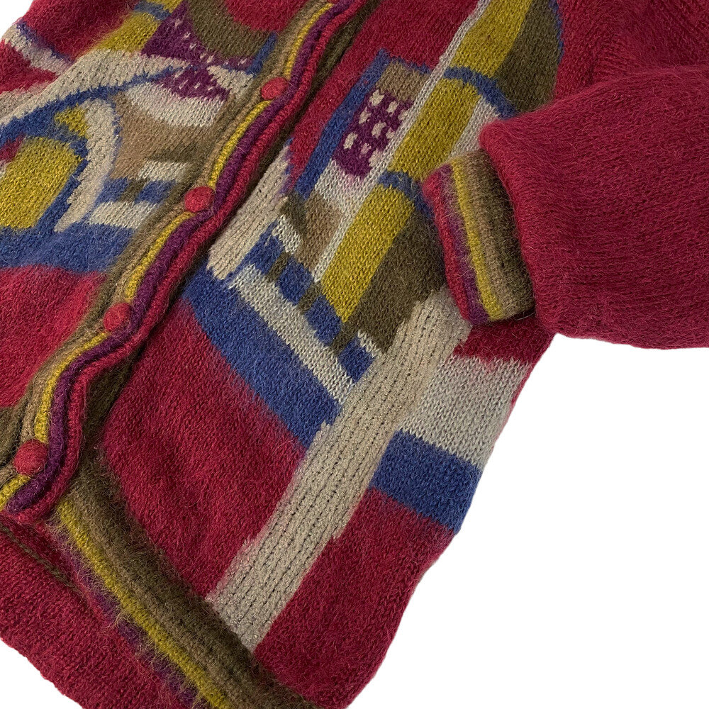버건디 색상의 가디건입니다.