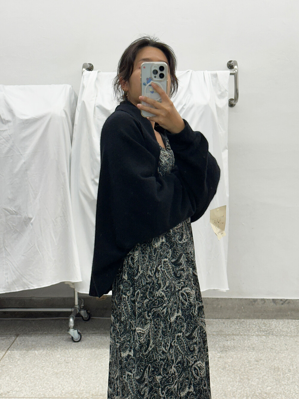 ♦ 아주 가끔 찍어올리는 착용샷 참고! 클짱은 155cm / 44반 55 / S사이즈 입니다.