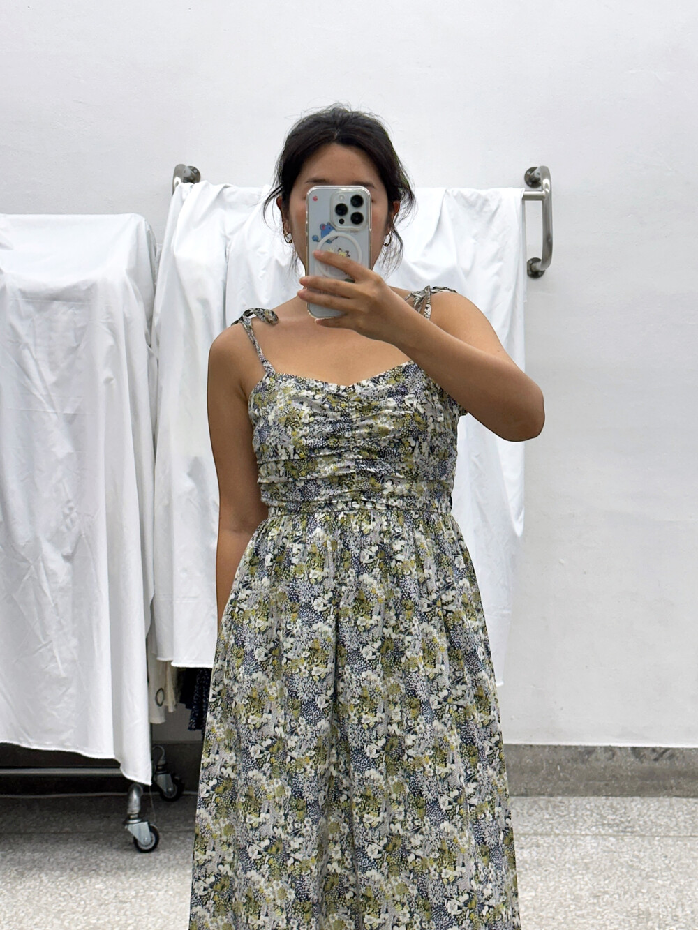 어깨끈은 리본을 묶어 길이조절 가능해요.
