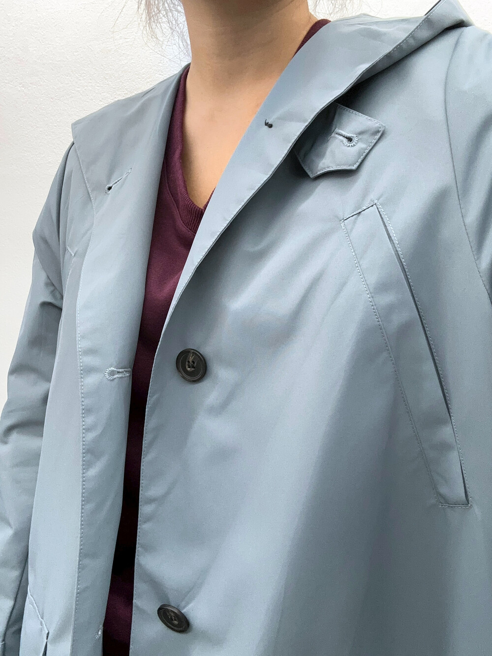 넥라인 여밀 수 있는 디테일이 더해졌어요.