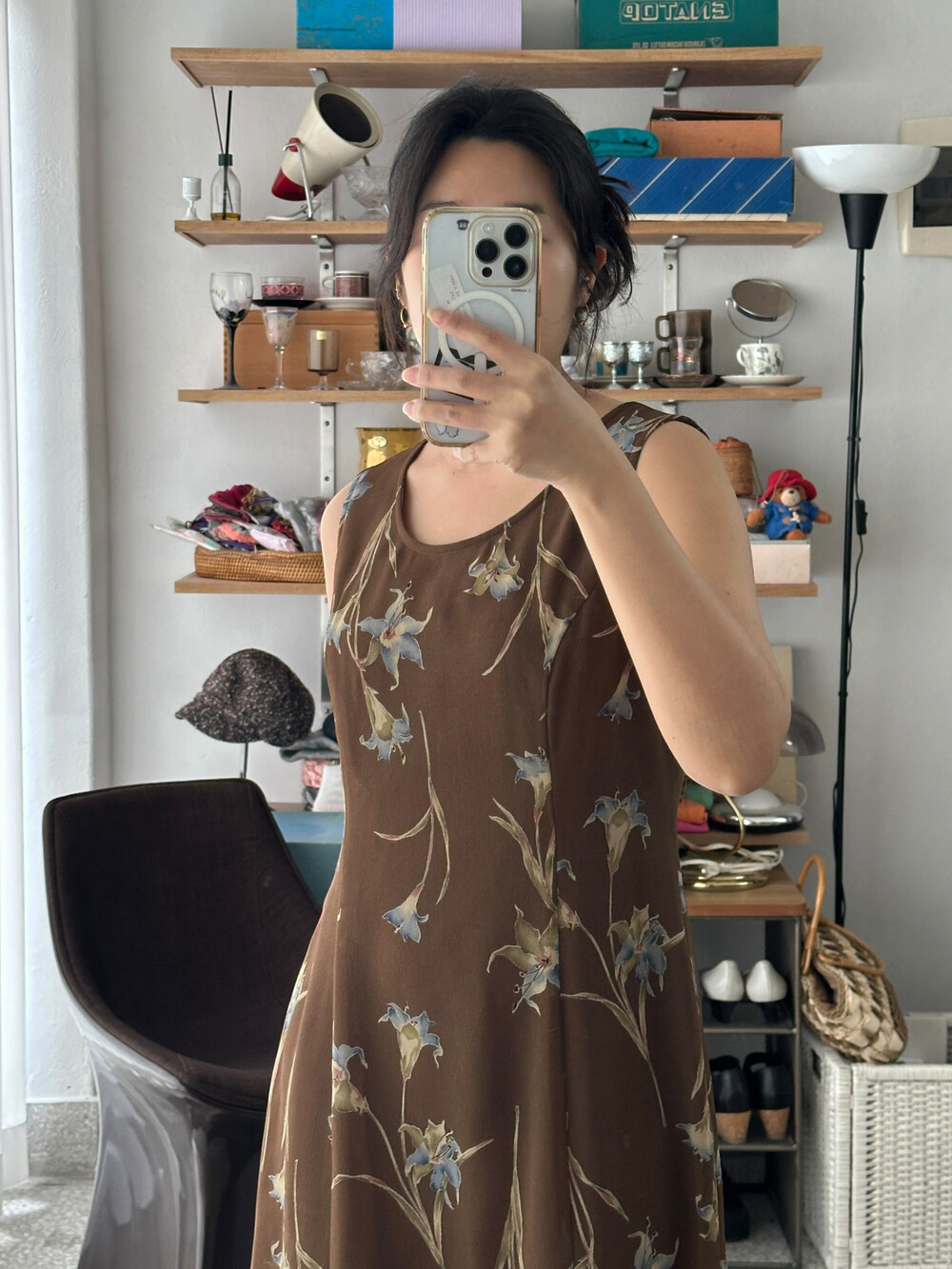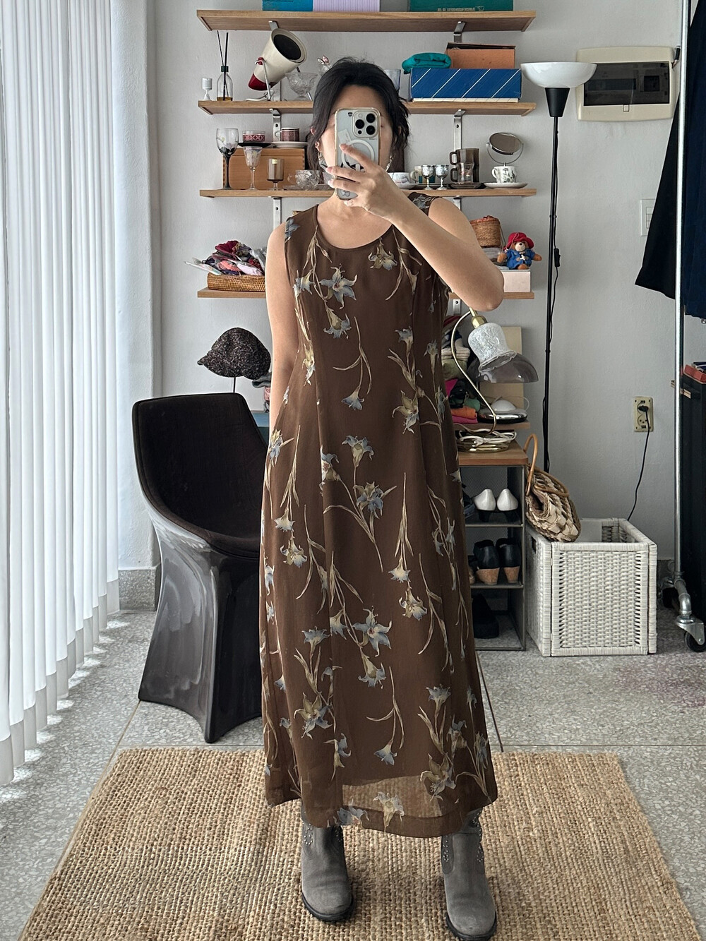 흐린 고동색의 원피스입니다.