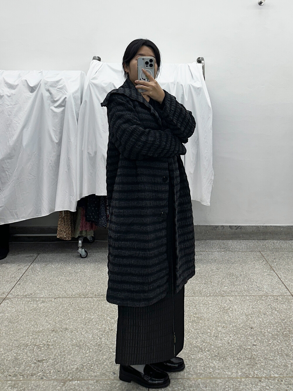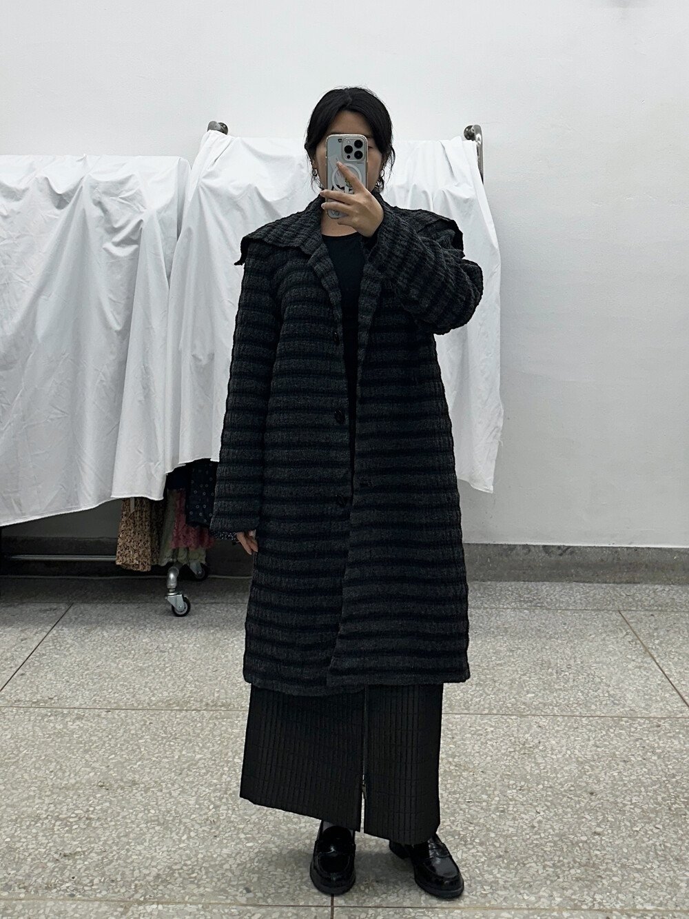 무채색으로 이루어진 외투입니다.
