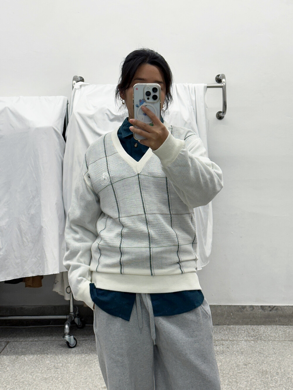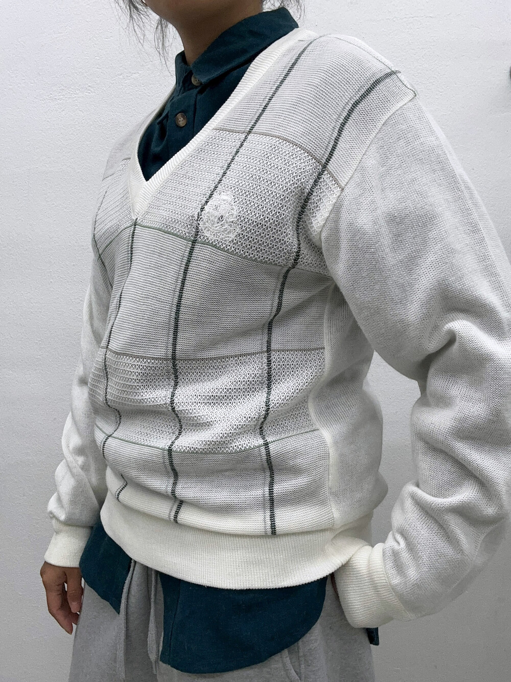 아이보리 색감에 옅은 녹색 체크패턴이 멋스러워요.