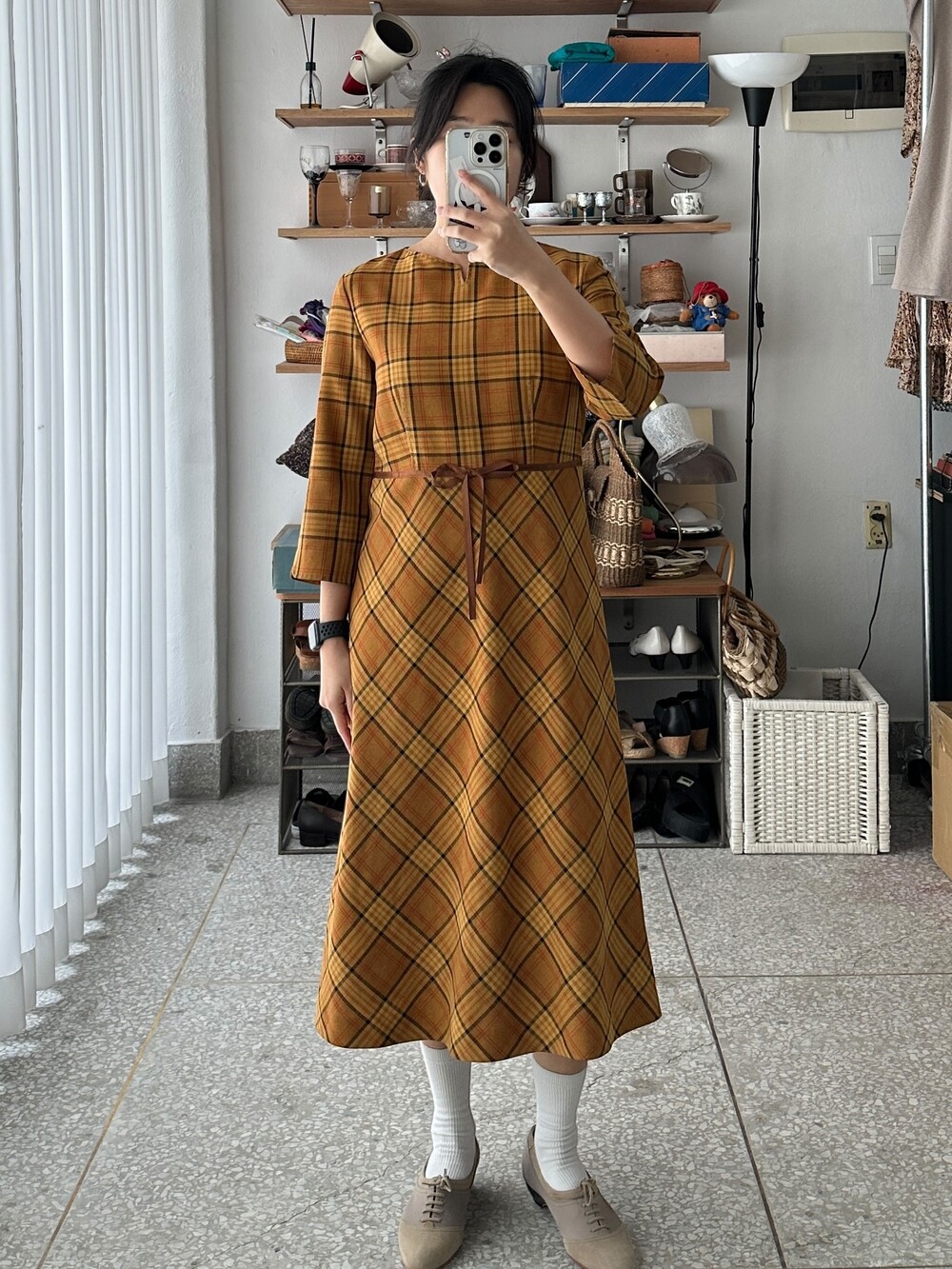 체크패턴의 레트로 원피스입니다.