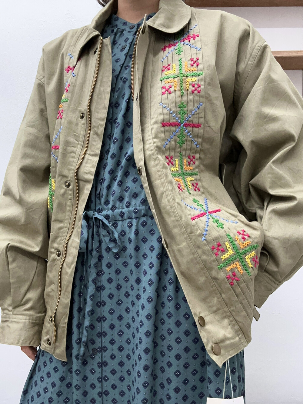 짜여진 자수패턴이 귀여운 점퍼입니다.