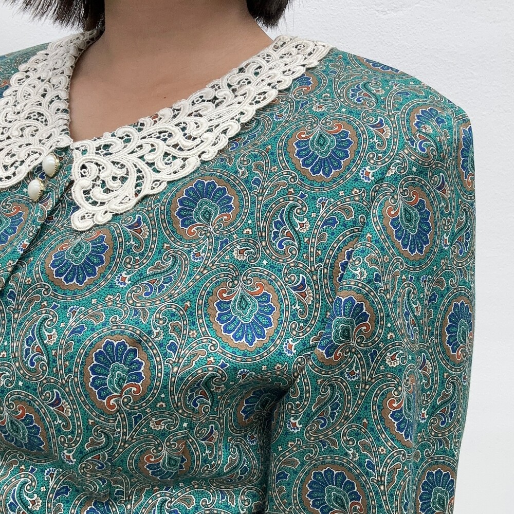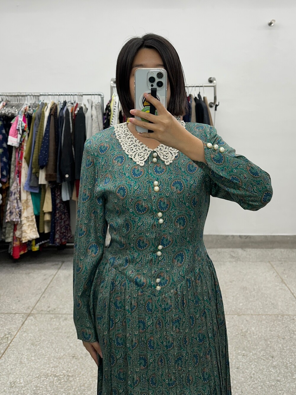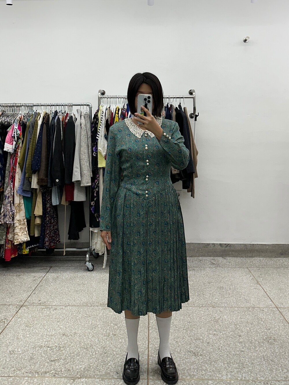 진주빛 단추와 레이스 카라가 잘 어울립니다.