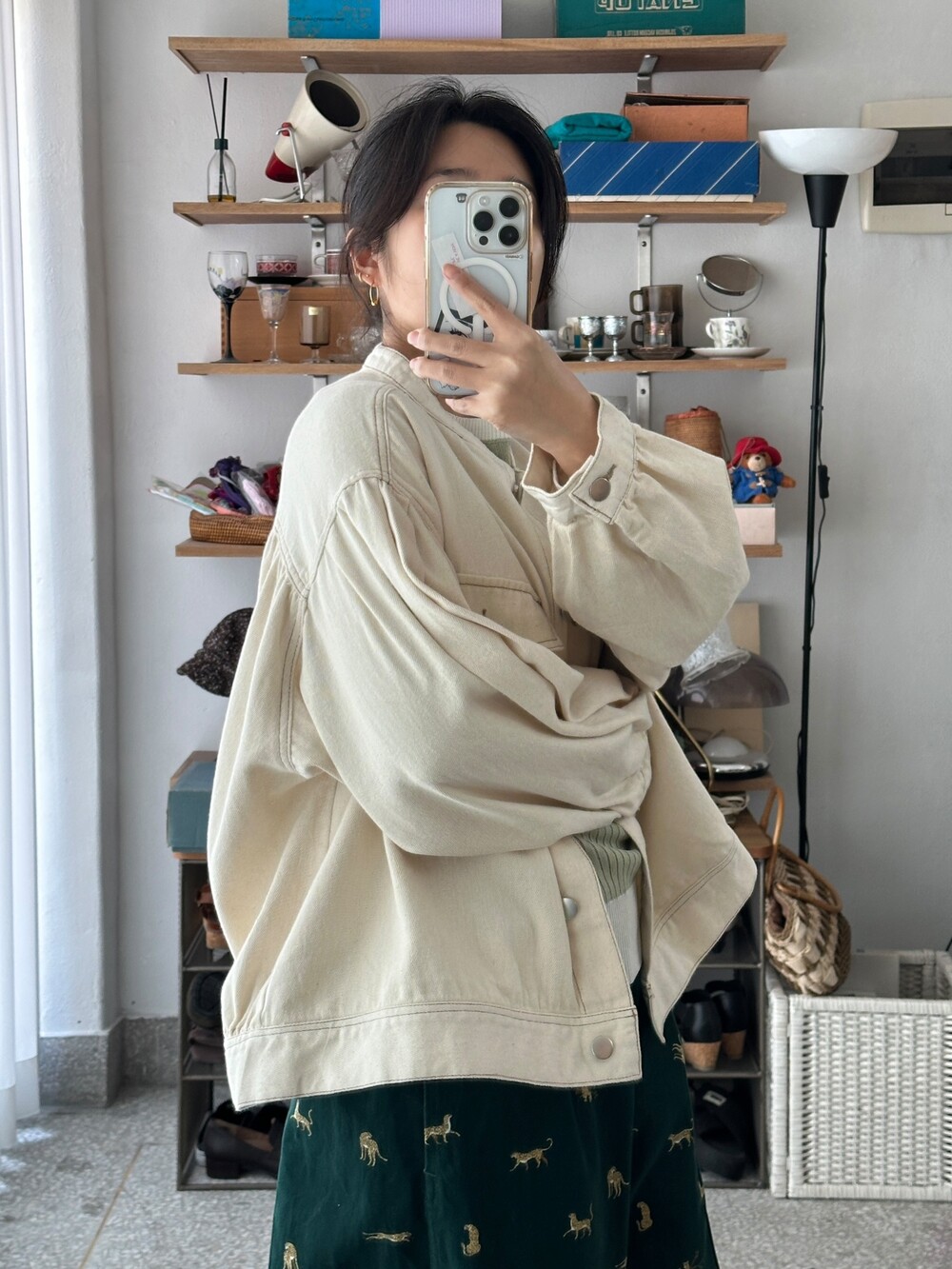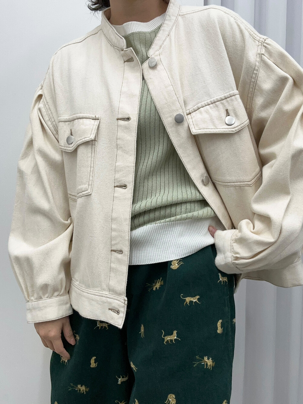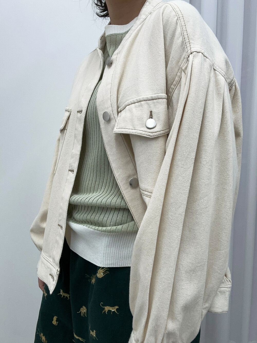 아이보리 색감의 자켓입니다.