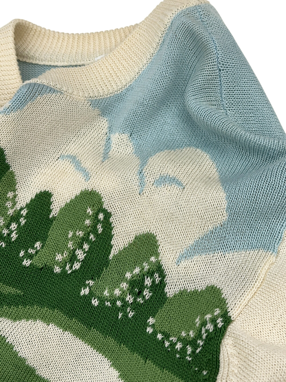 성글게 짜여진 부분이 있습니다. 다른 색상의 실들과 엮으며 생긴 현상으로 보여요.