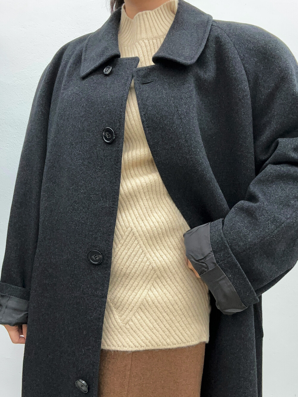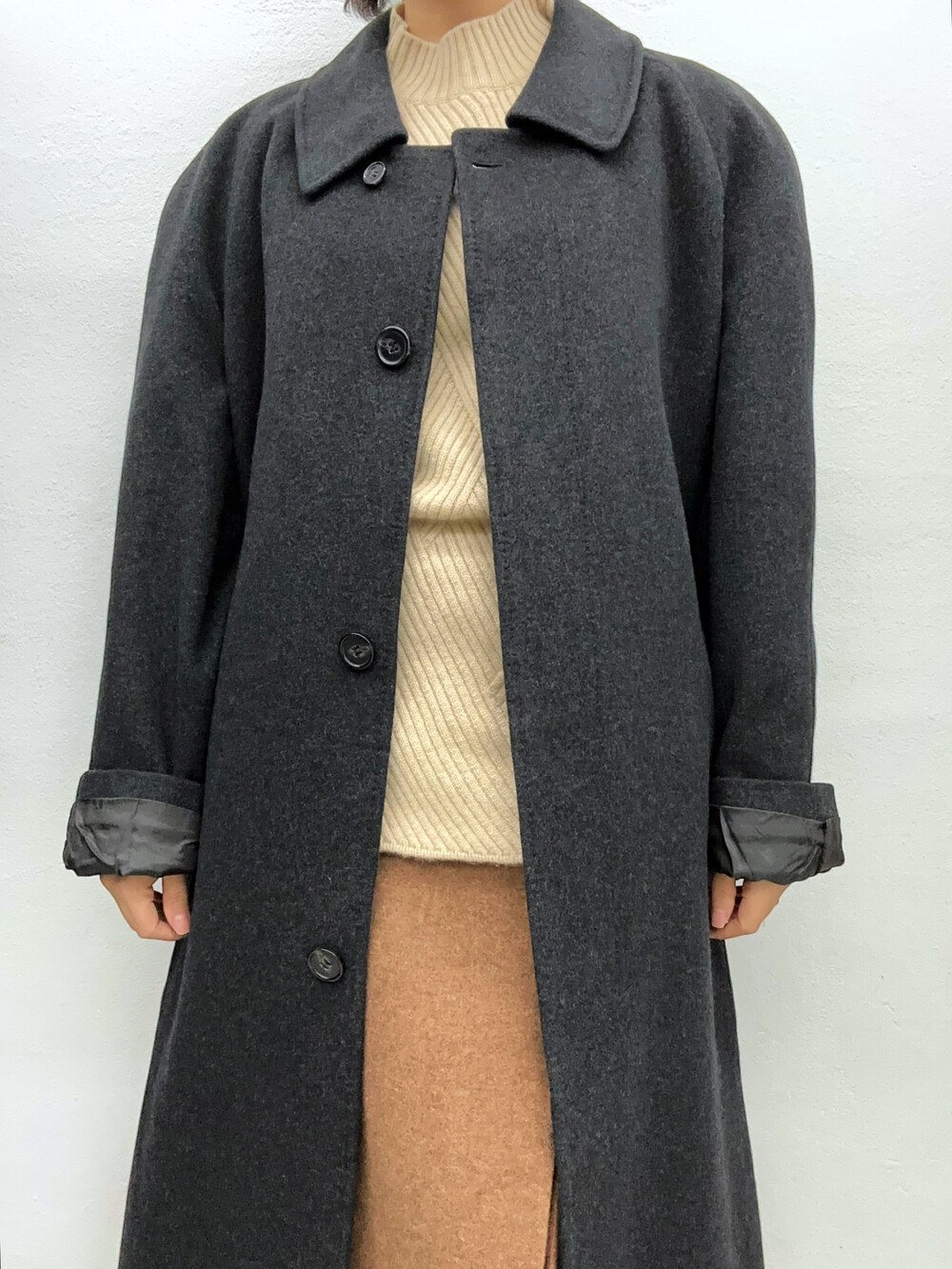 짙은 회색의 코트입니다.