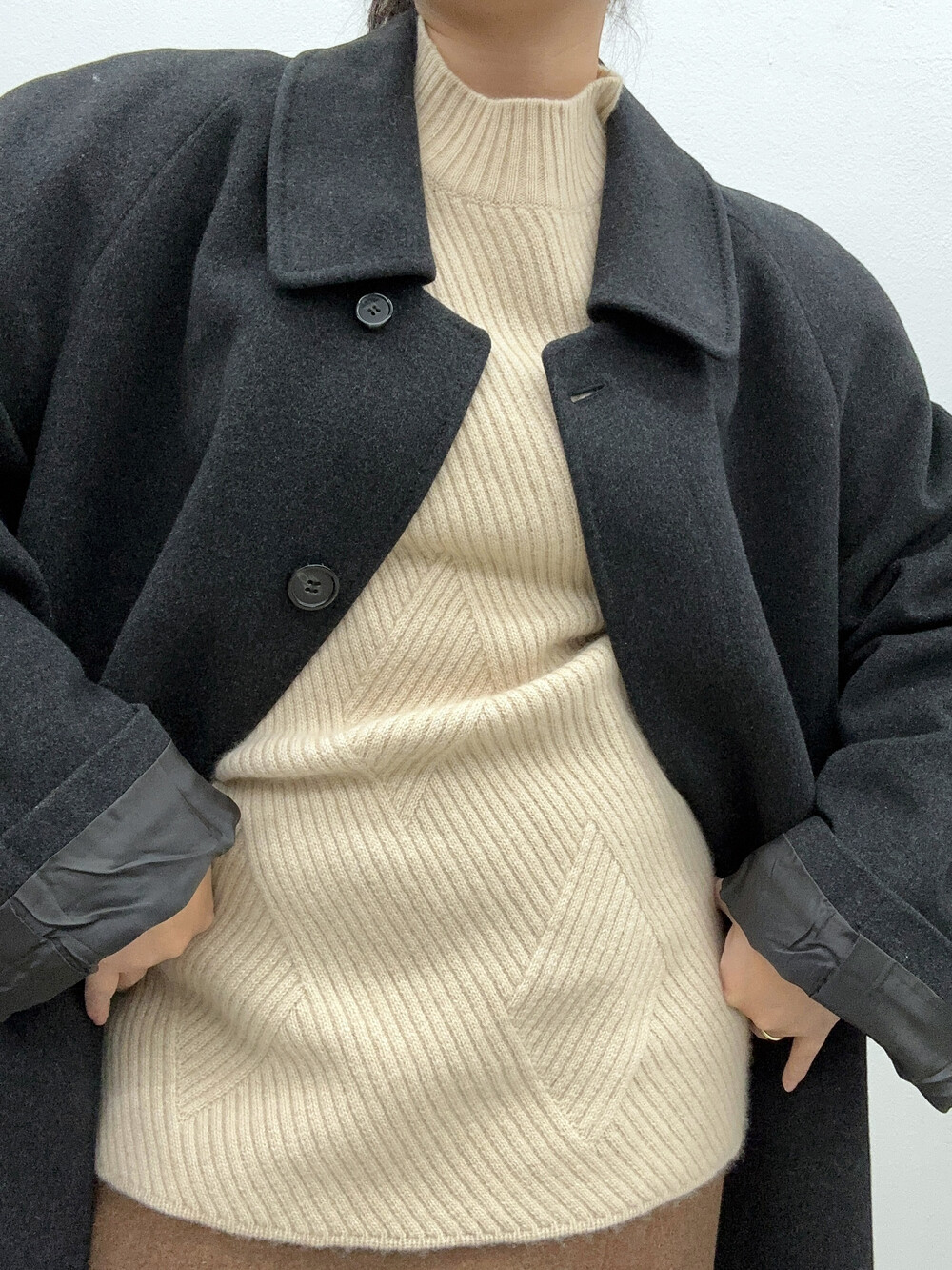 도톰하고 부드러운 캐시미어 100% 소재감이며