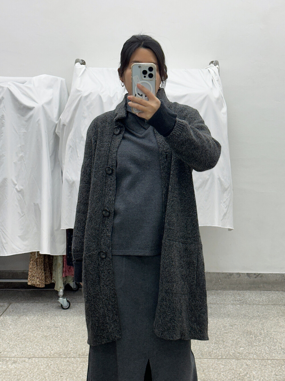 ♦ 아주 가끔 찍어올리는 착용샷 참고! 클짱은 155cm / 44반 55 / S사이즈 입니다.