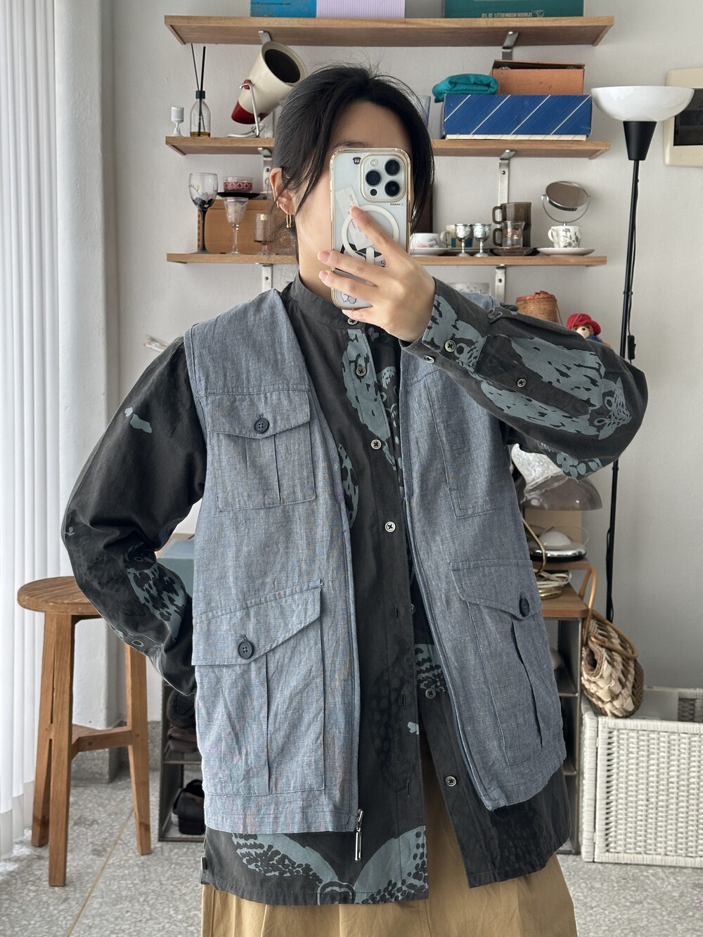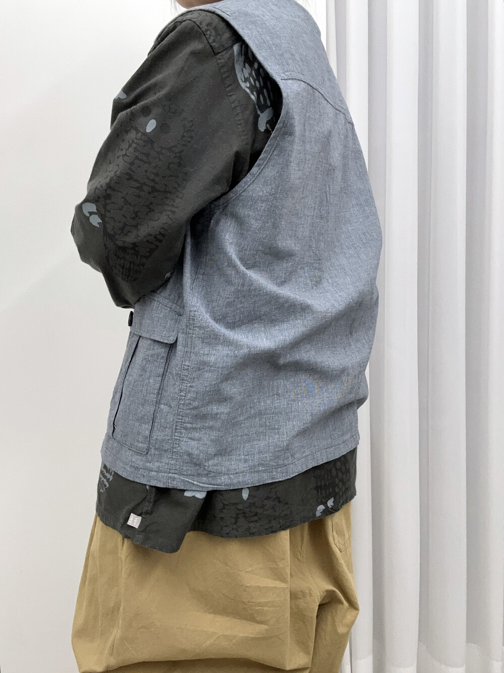 옅은 푸른색상의 베스트입니다.