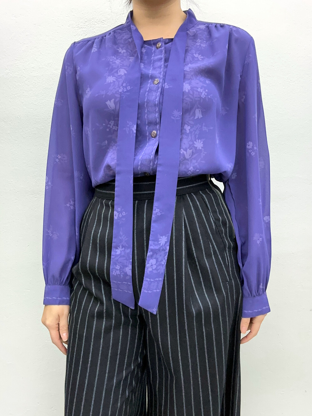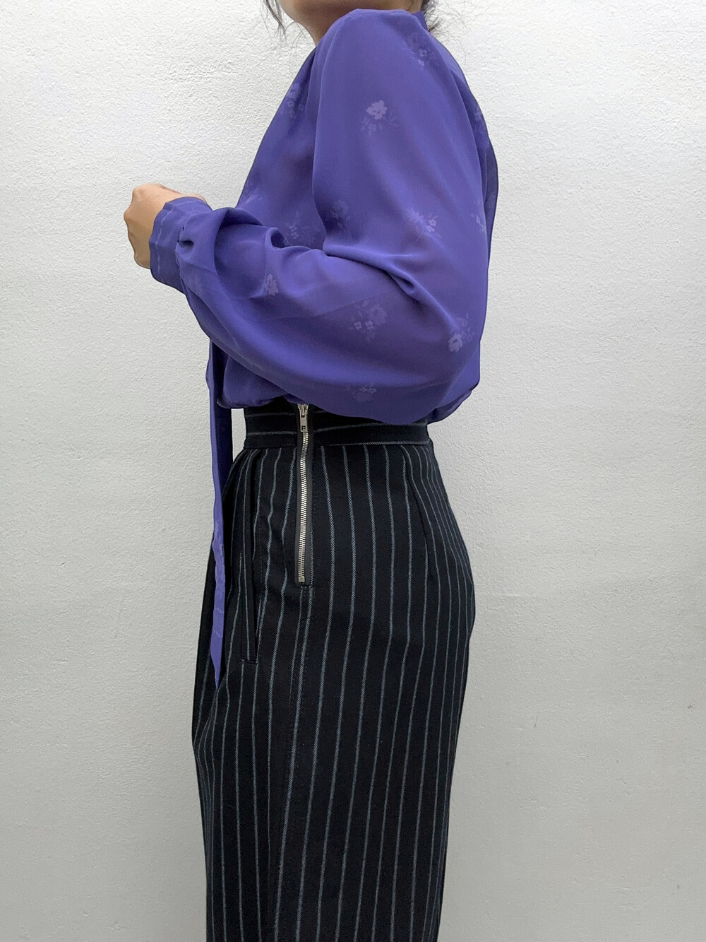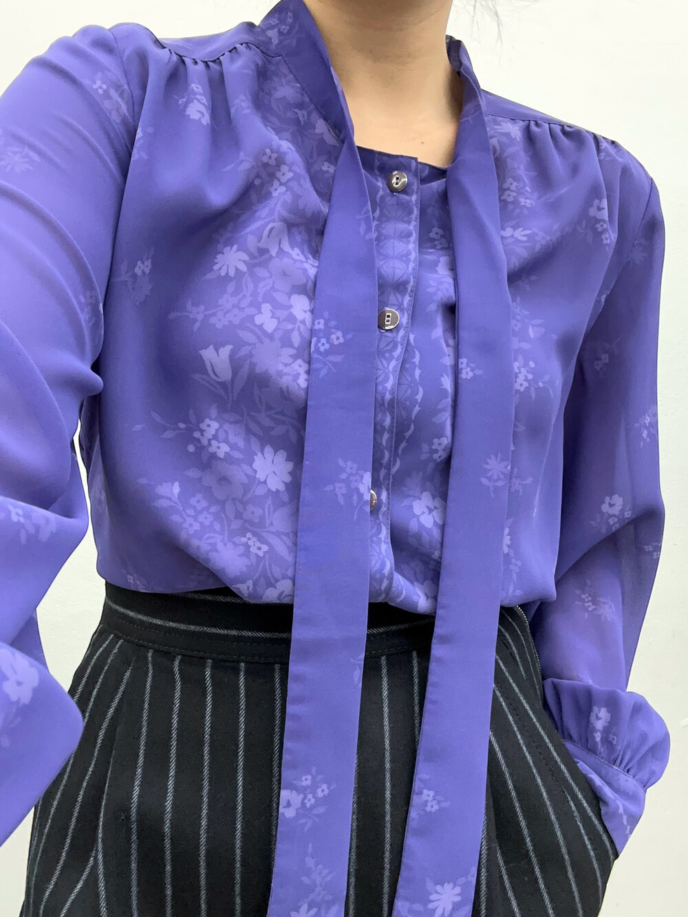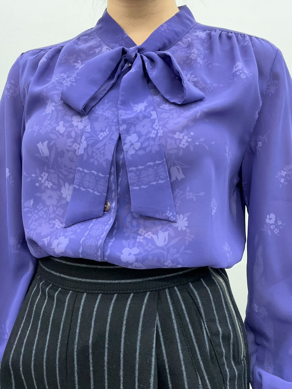 청보라색상의 블라우스입니다.