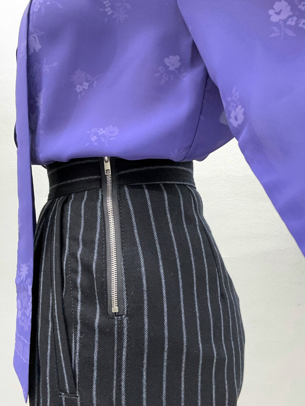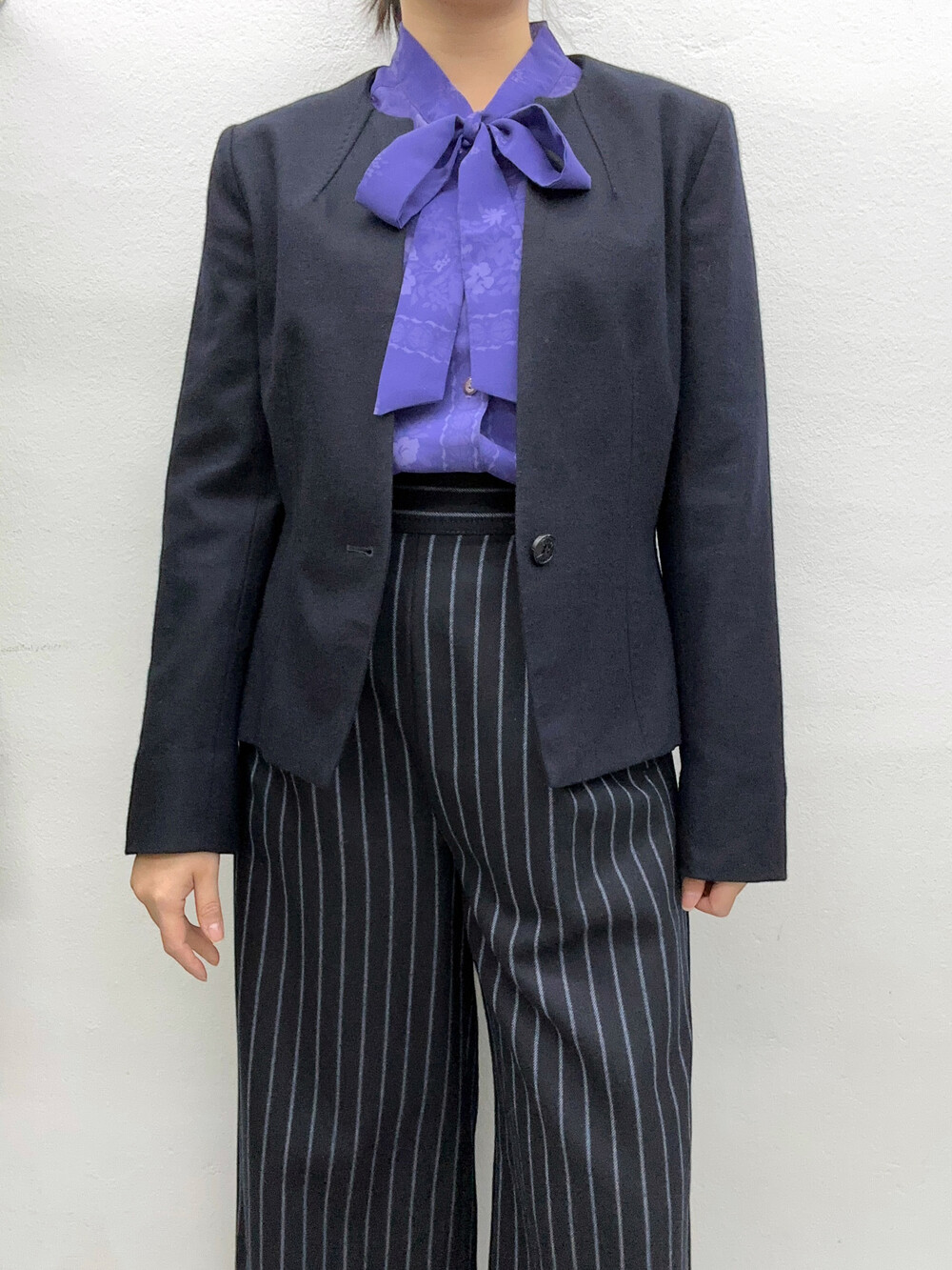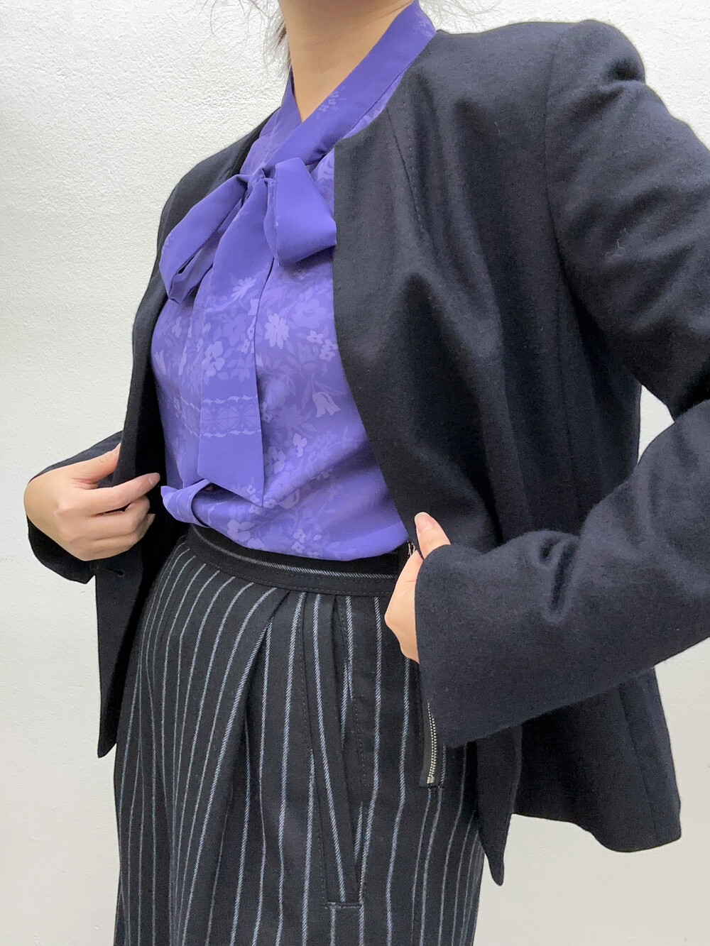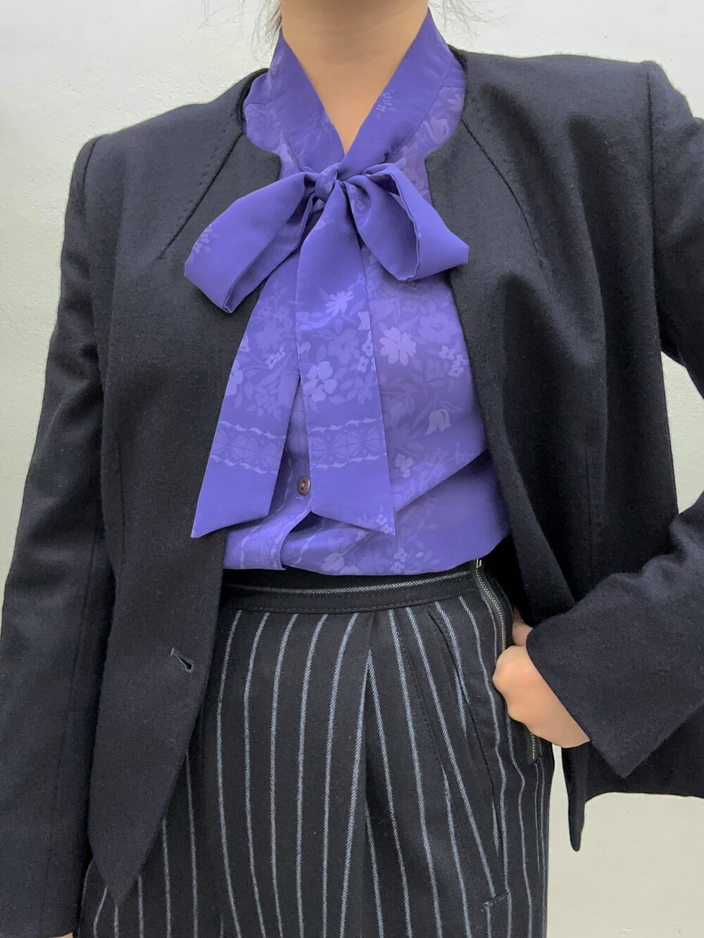 청보라색상의 블라우스입니다.