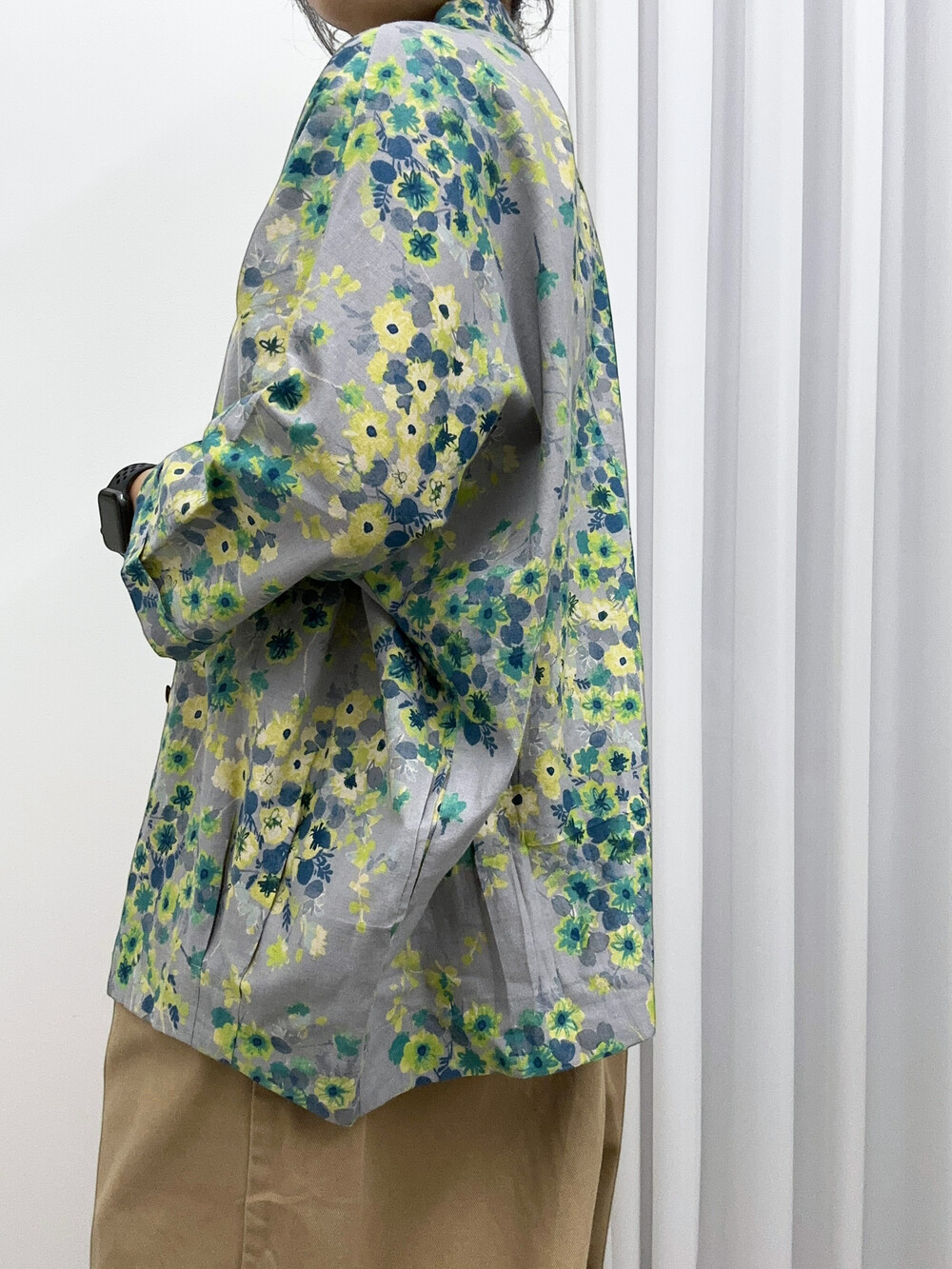 Flower linen shirts jacket