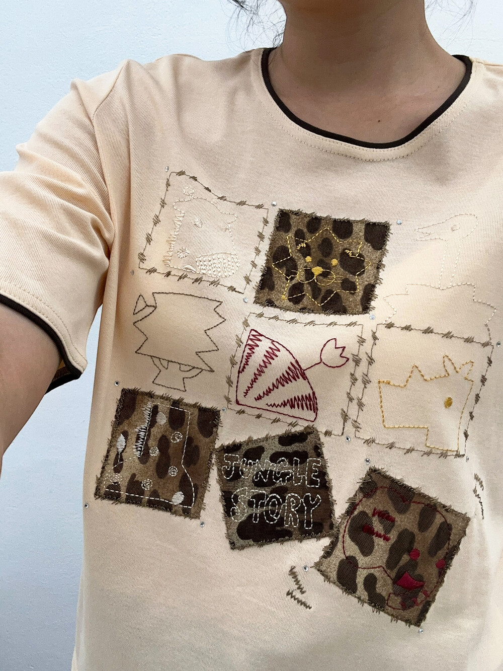 기린과 사자 등 자수 패턴이 매우 귀여우며