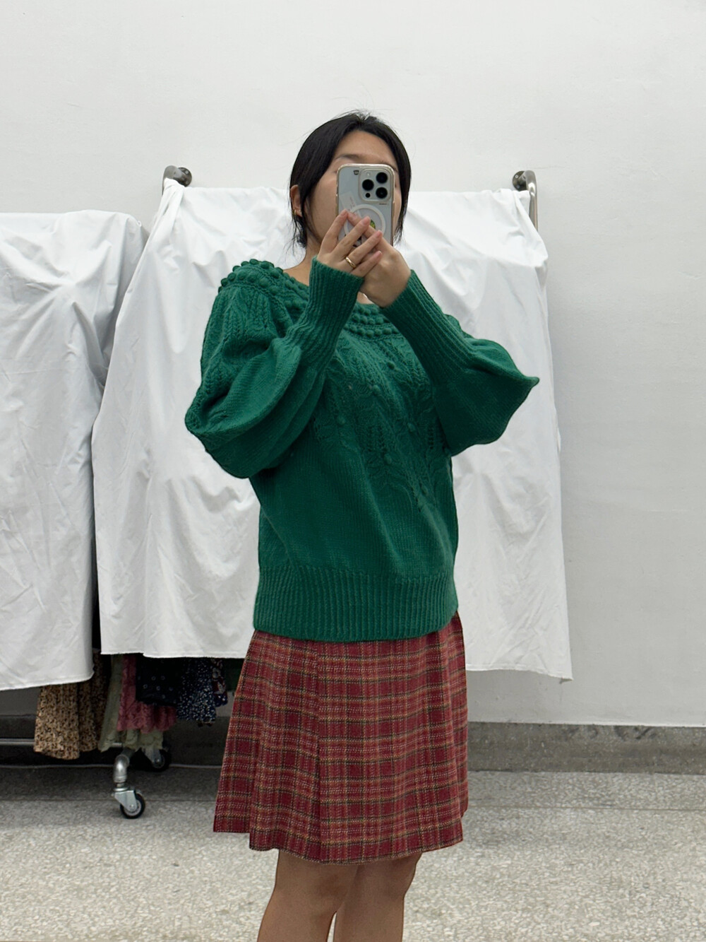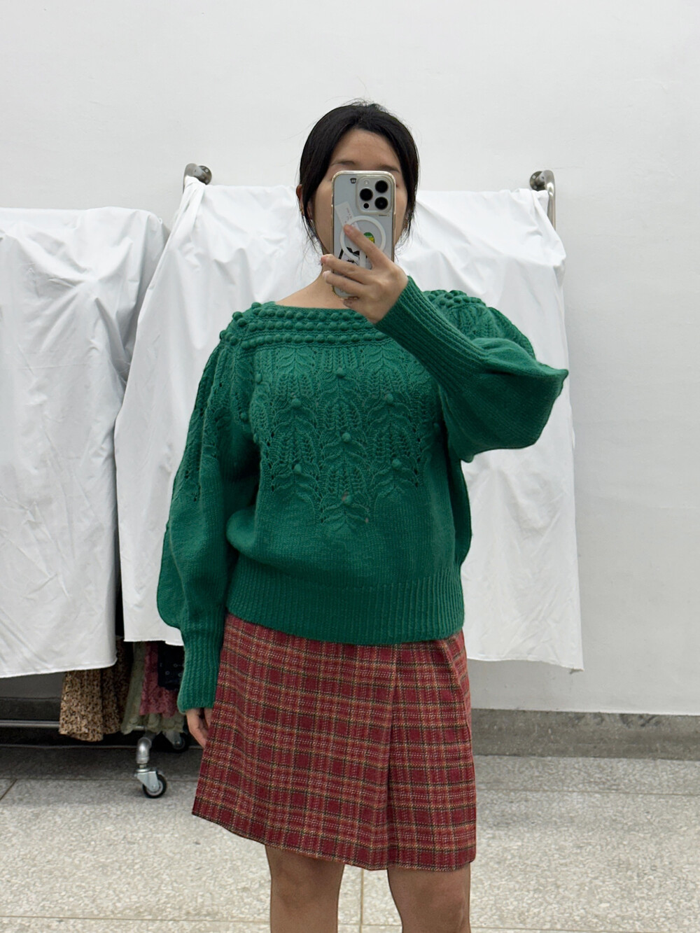 초록색 색감의 스웨터입니다.
