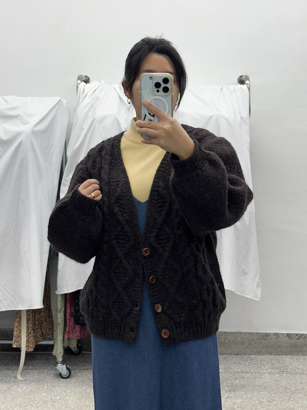 아란스웨터 스타일이며 울 소재로 추정됩니다.