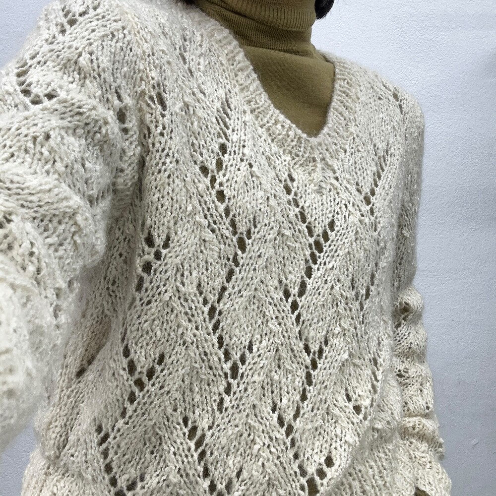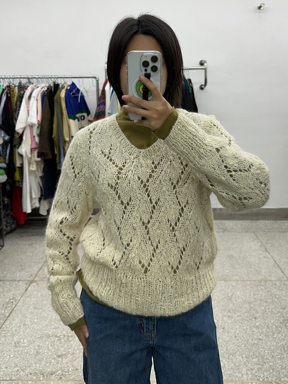 몽실몽실한 울 털실로 성글게 짜여졌어요.