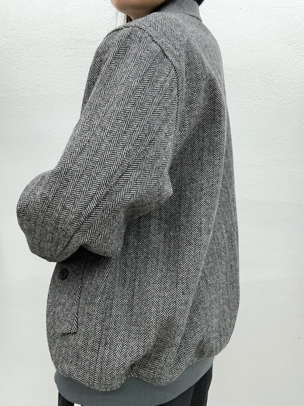 헤링본 패턴 짜임의 울 혼용 소재