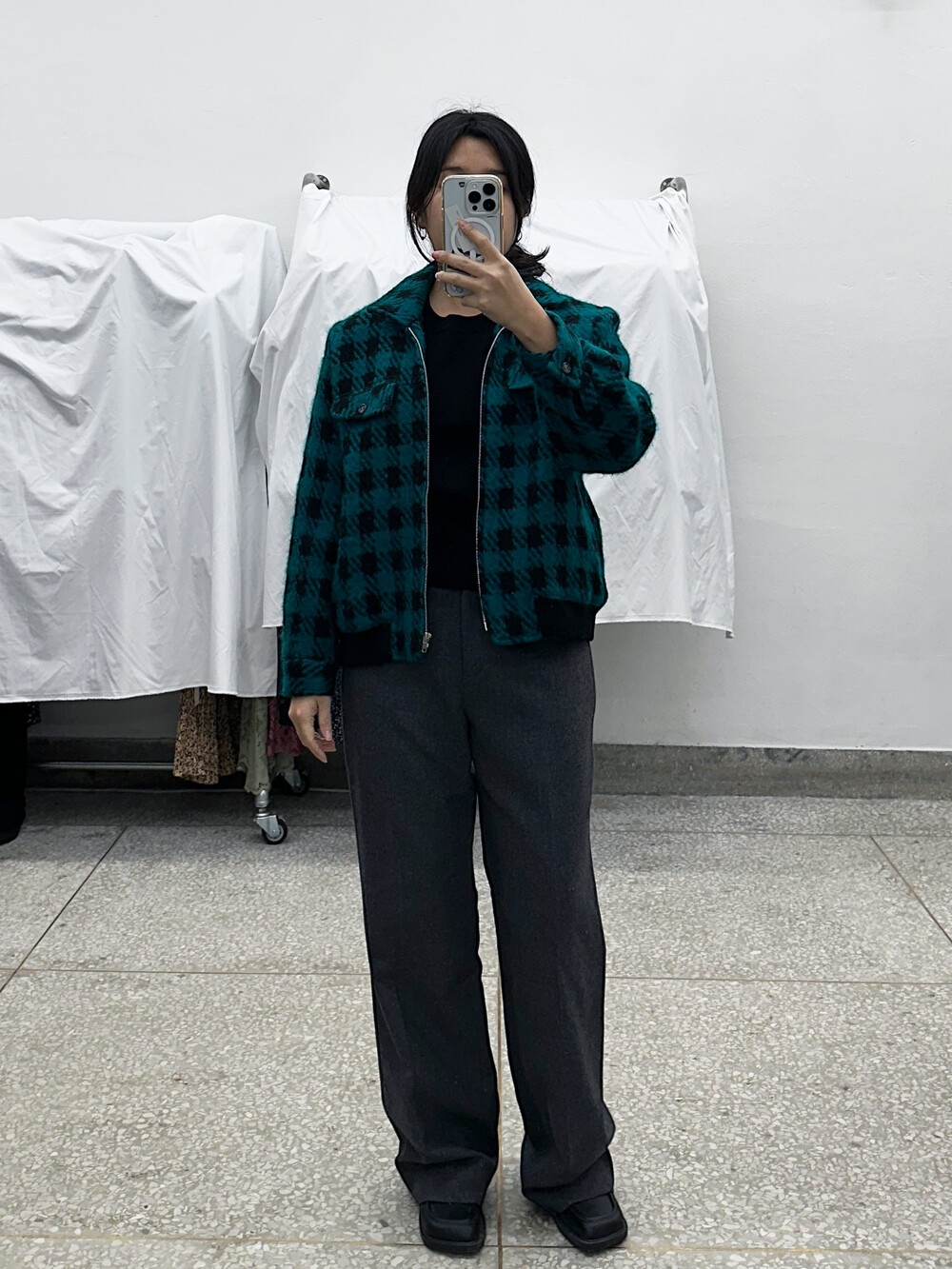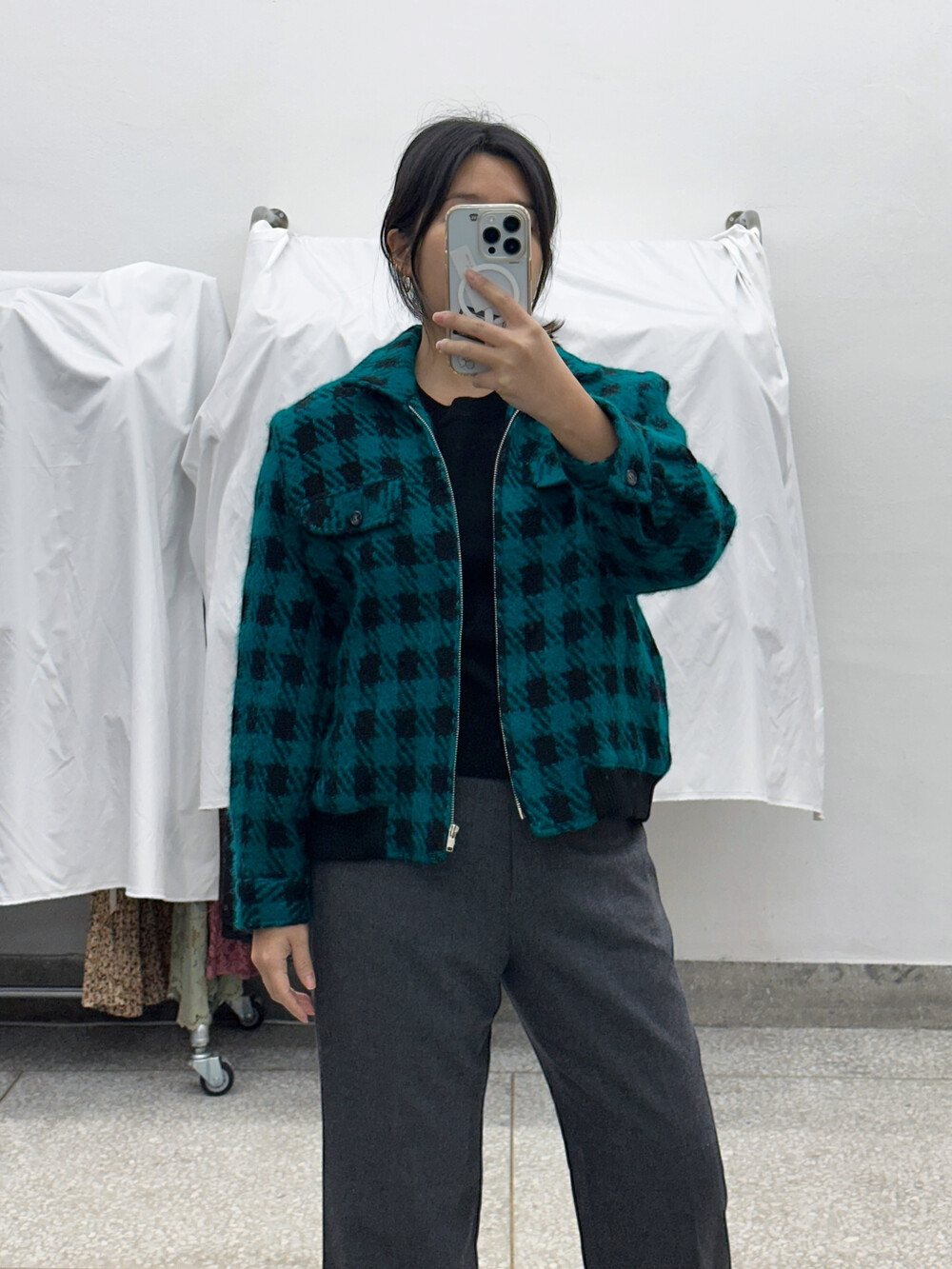 ♦ 아주 가끔 찍어올리는 착용샷 참고! 클짱은 155cm / 44반 55 / S사이즈 입니다.