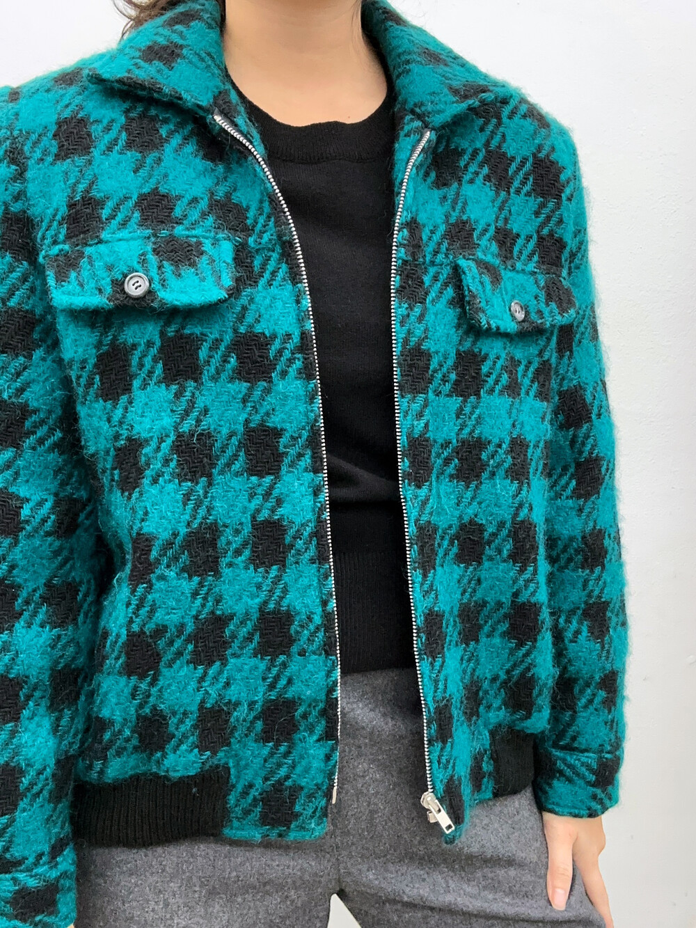 청록색의 자켓입니다.