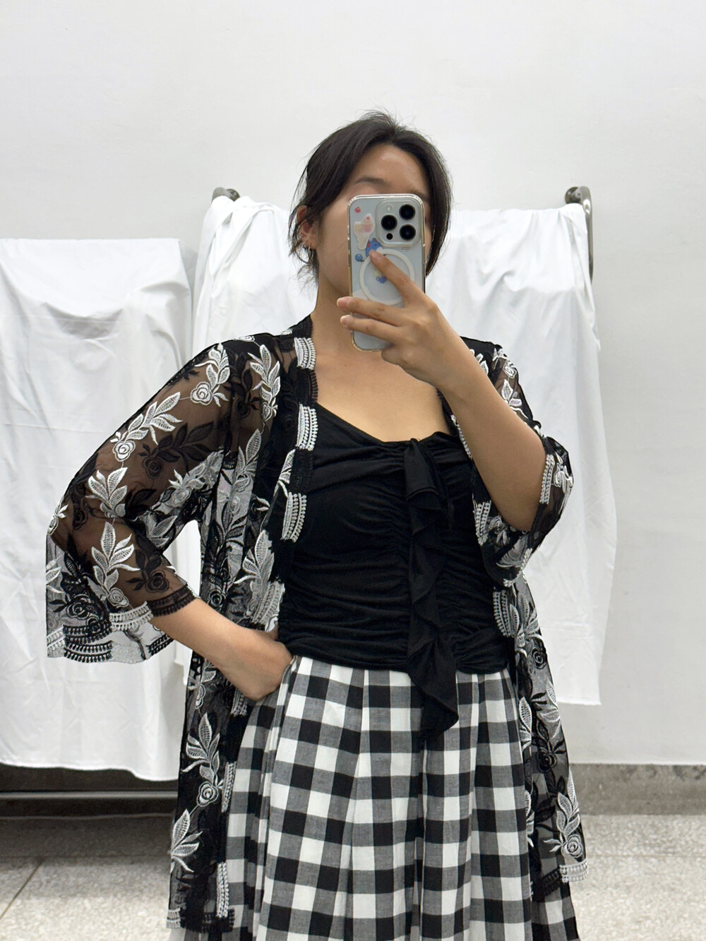 ♦ 아주 가끔 찍어올리는 착용샷 참고! 클짱은 155cm / 44반 55 / S사이즈 입니다.
