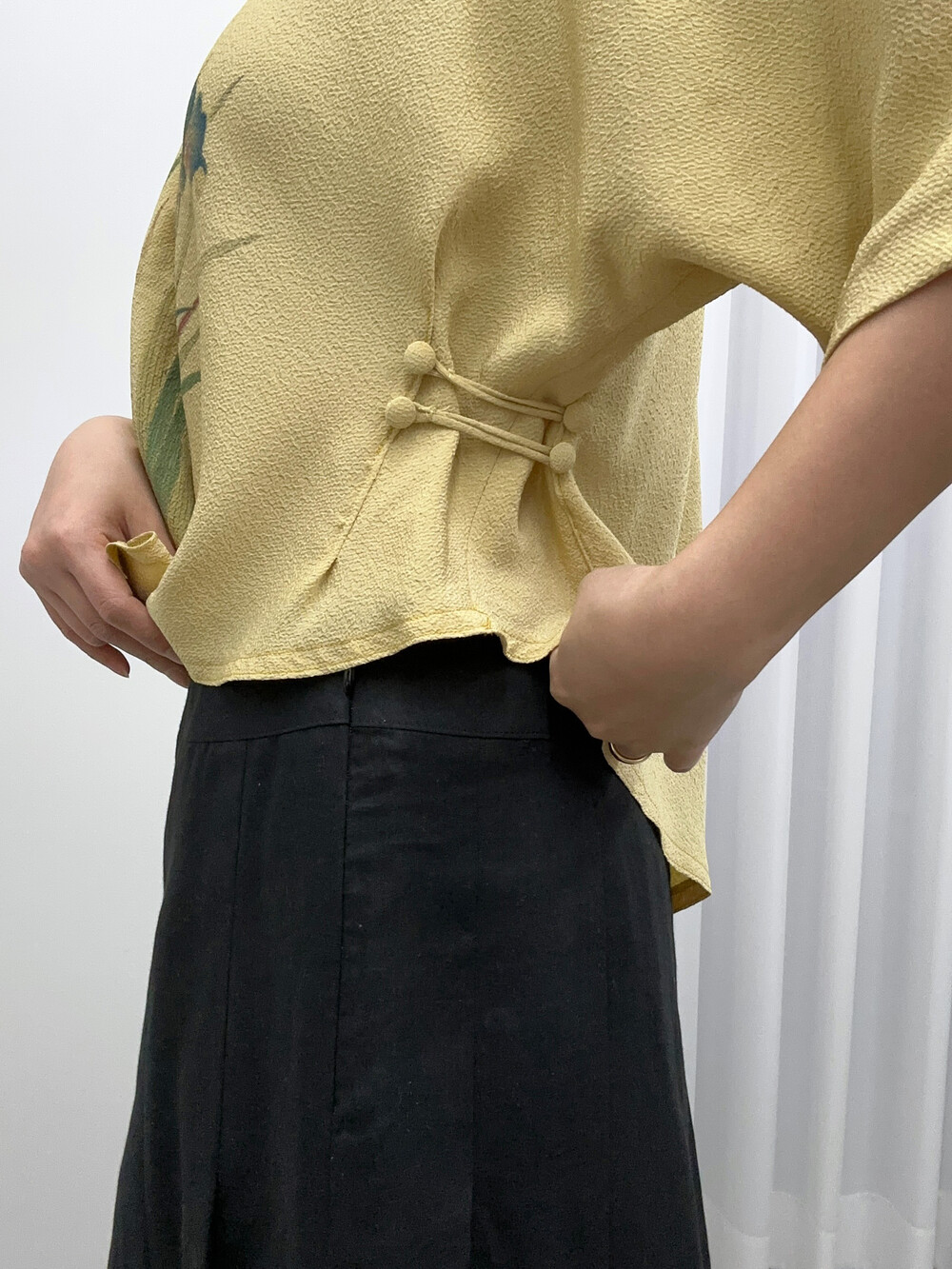 양 옆 허리부분 콩단추로