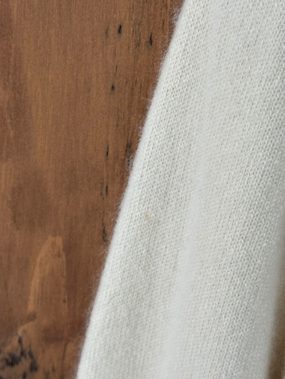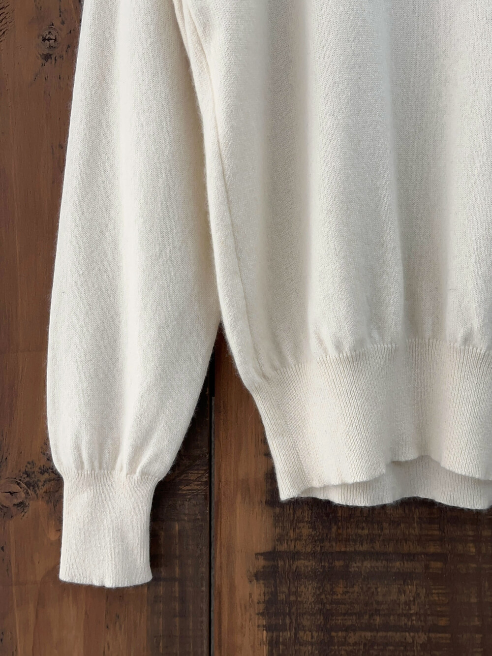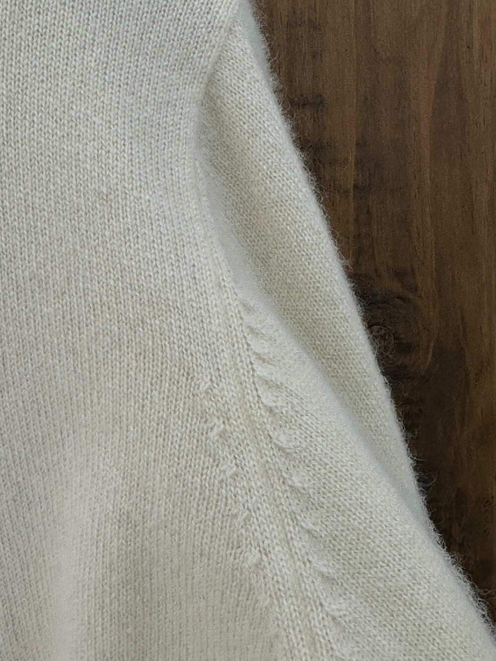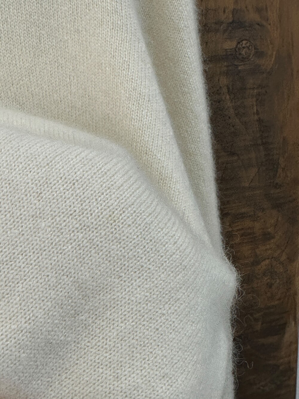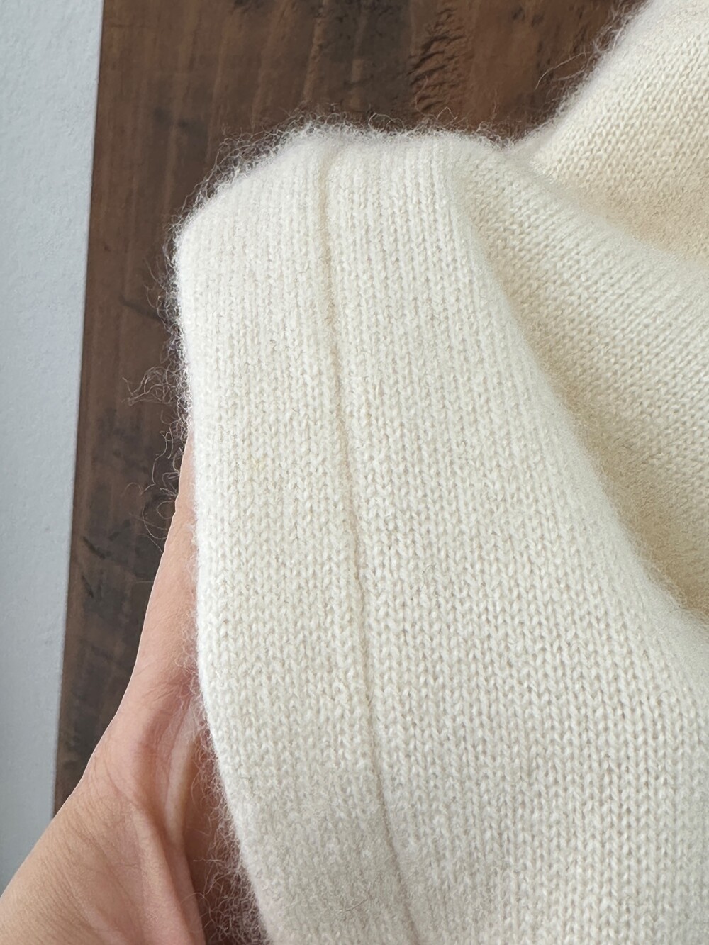 옅은 아이보리 색감의 터틀넥 니트입니다.