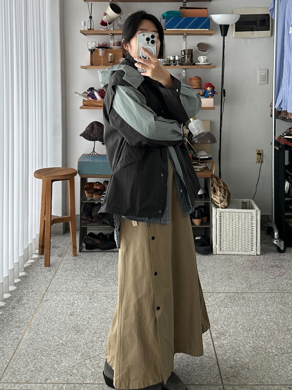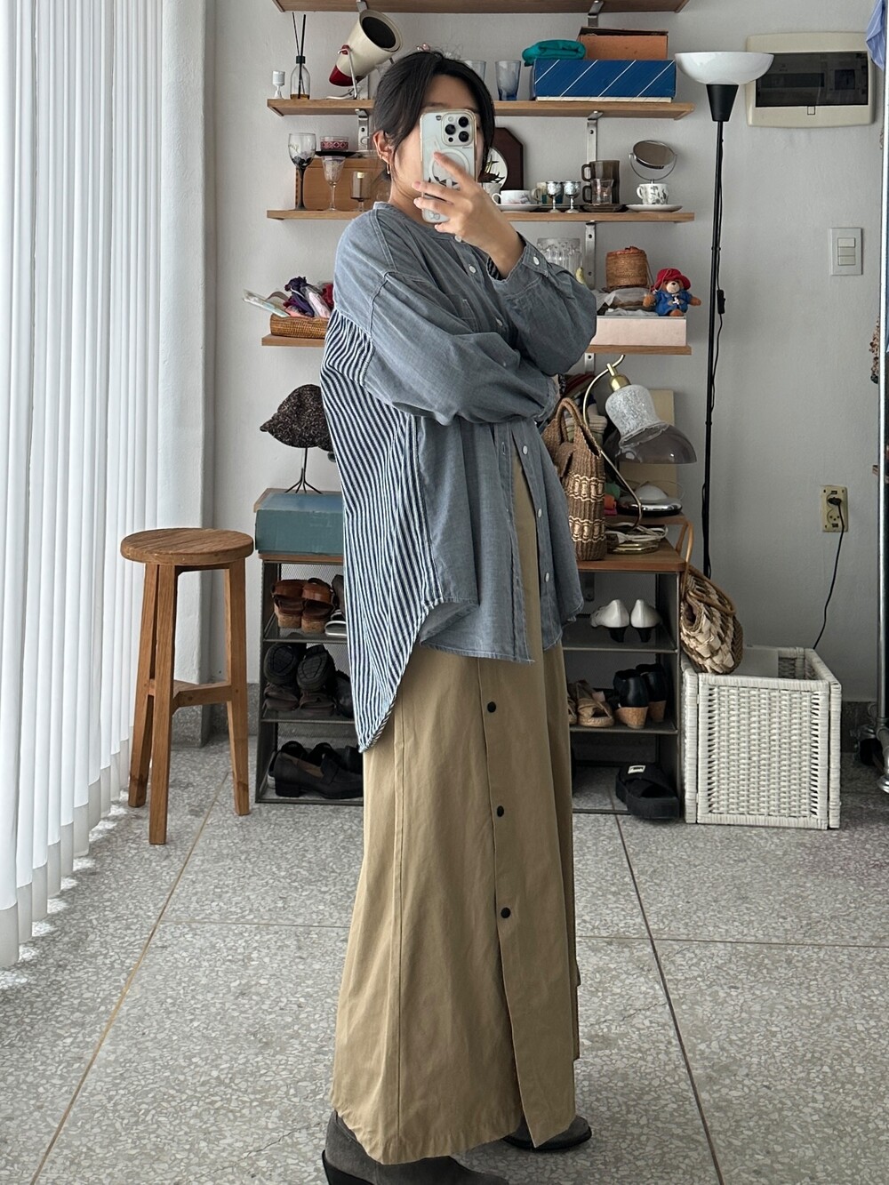 ♦ 아주 가끔 찍어올리는 착용샷 참고! 클짱은 155cm / 44반 55 / S사이즈 입니다.