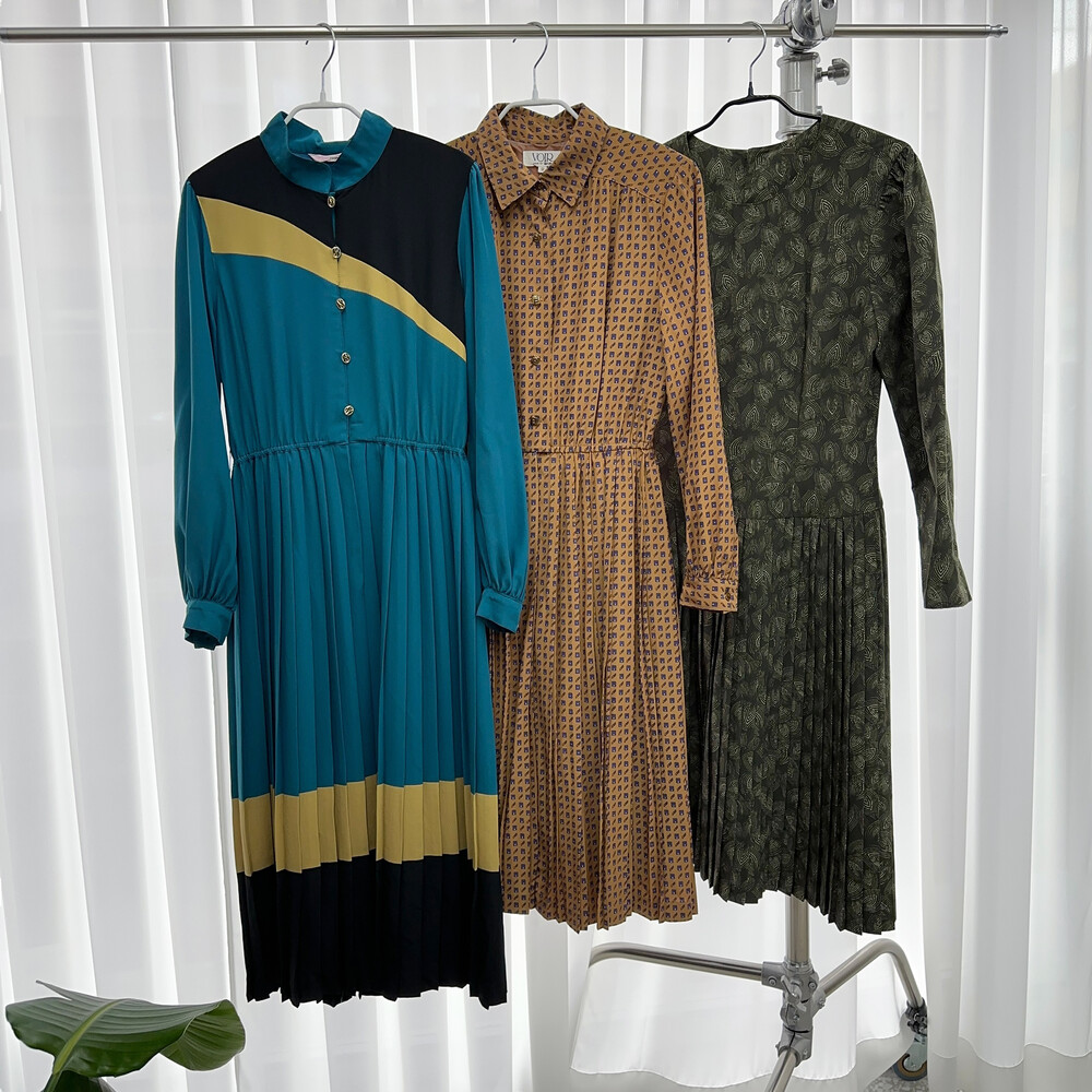 어두운 카키색상의 원피스입니다.