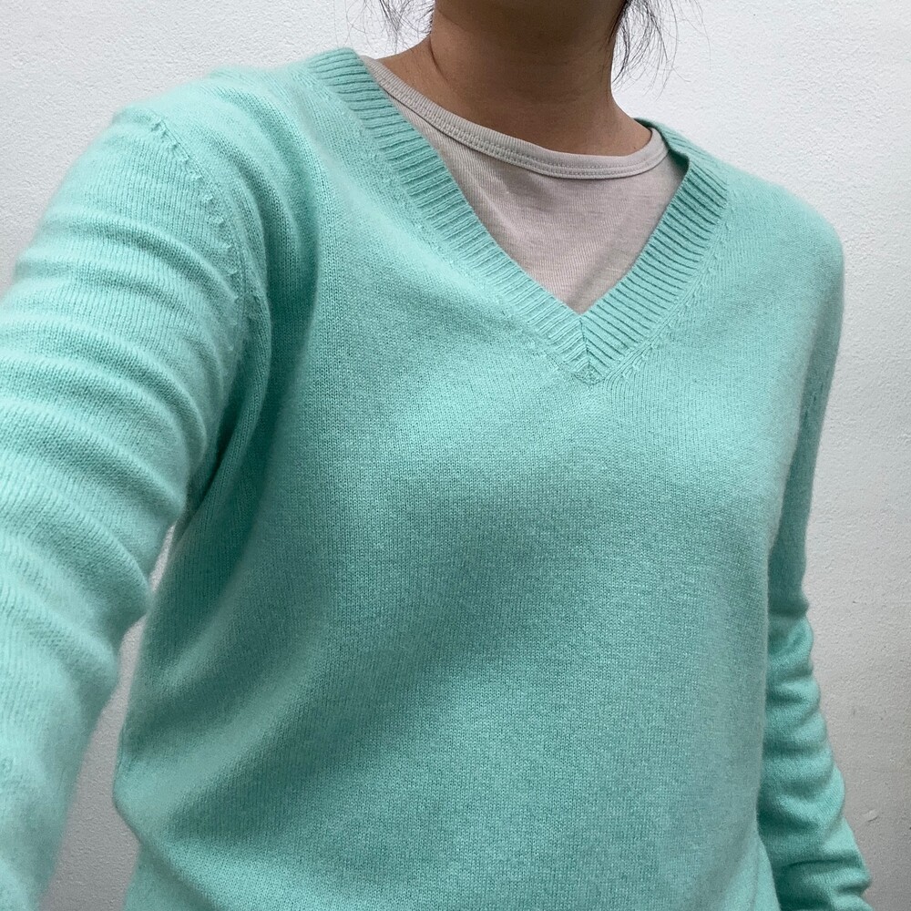 밝은 하늘색상이며 여성 L사이즈 정도입니다.
