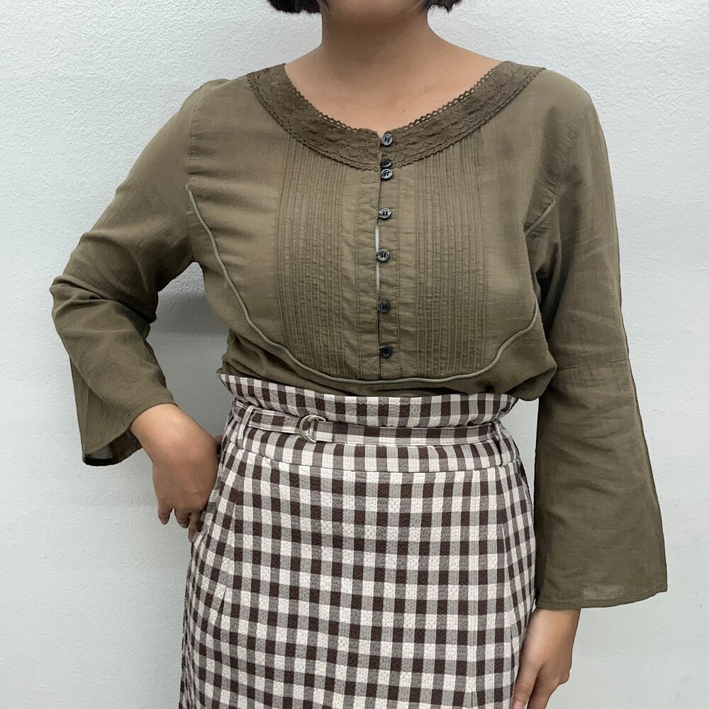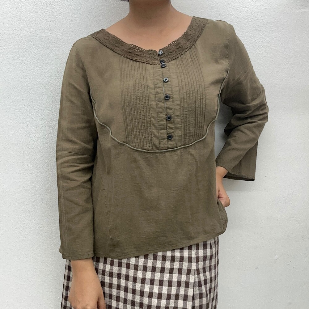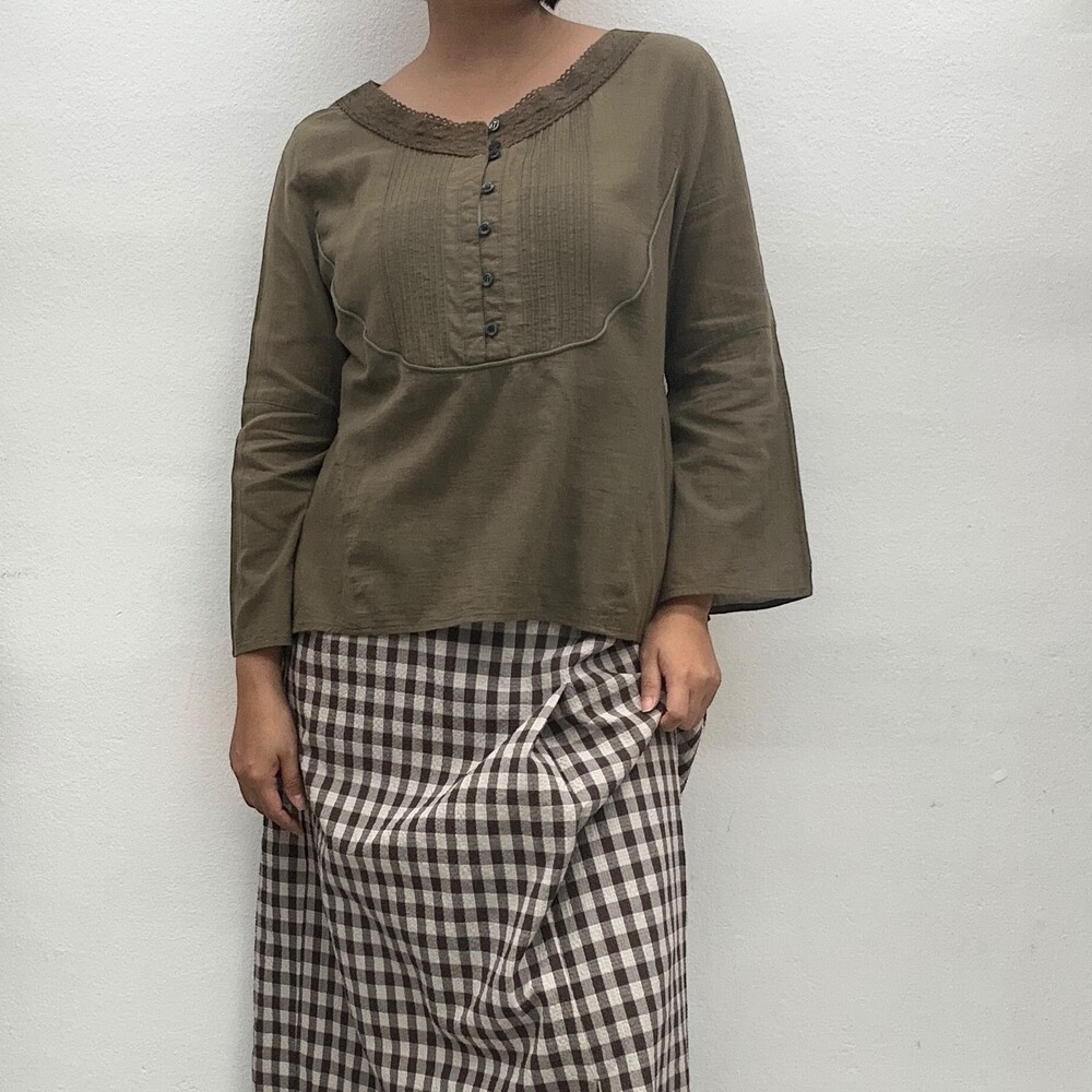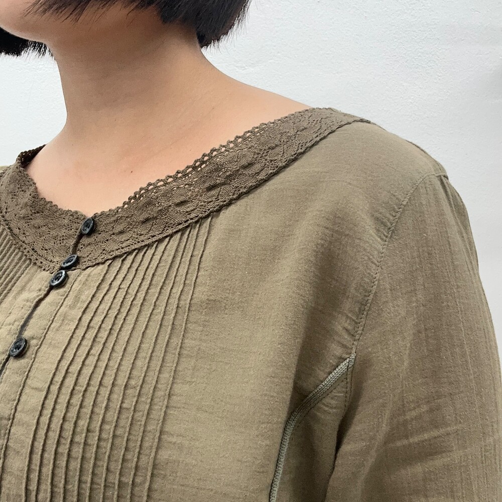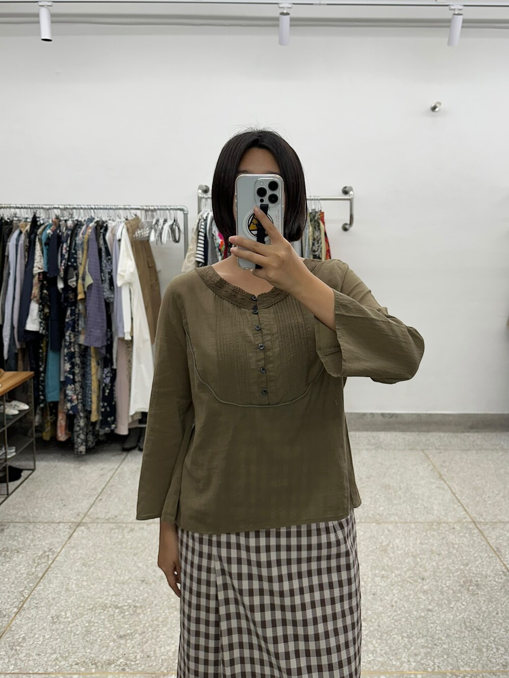 넥라인 레이스와 핀턱 디테일 있습니다.