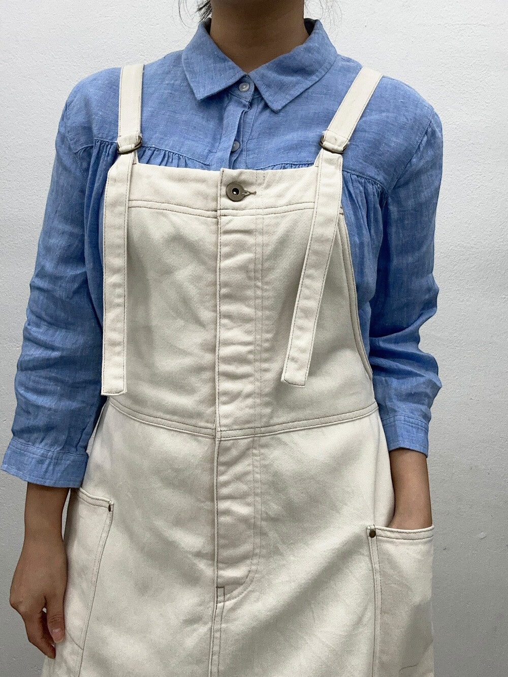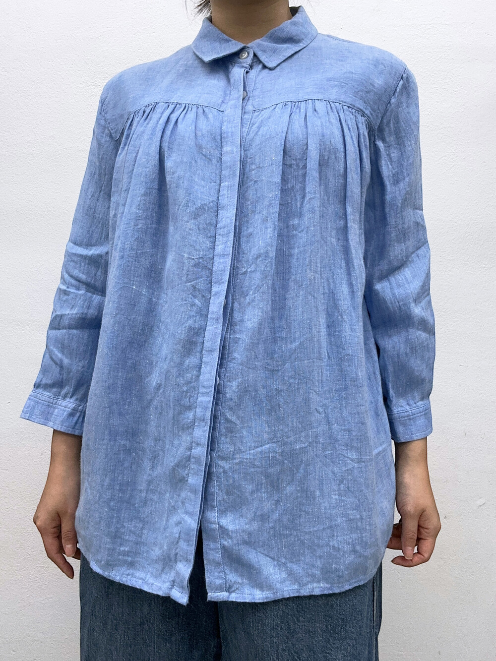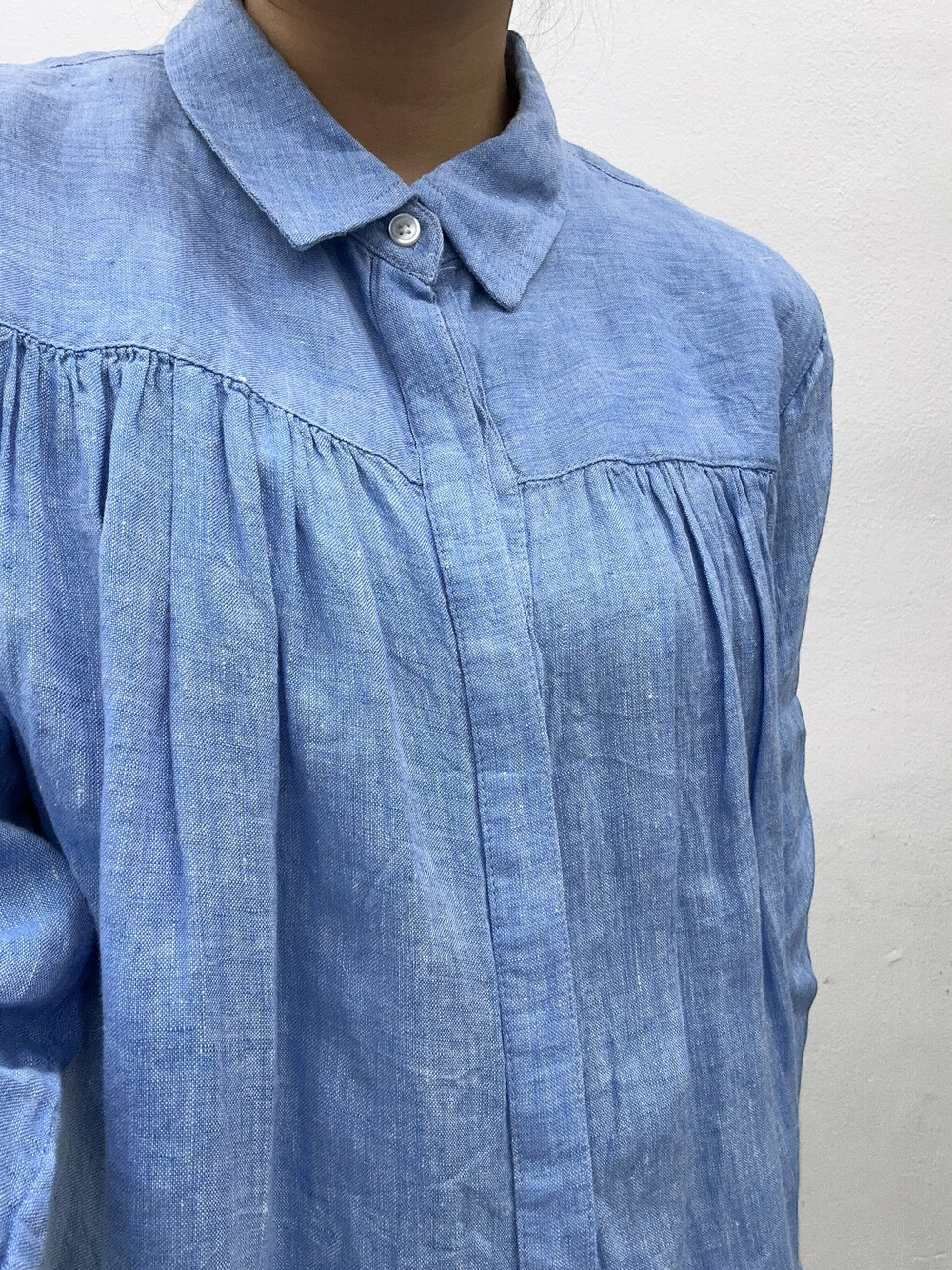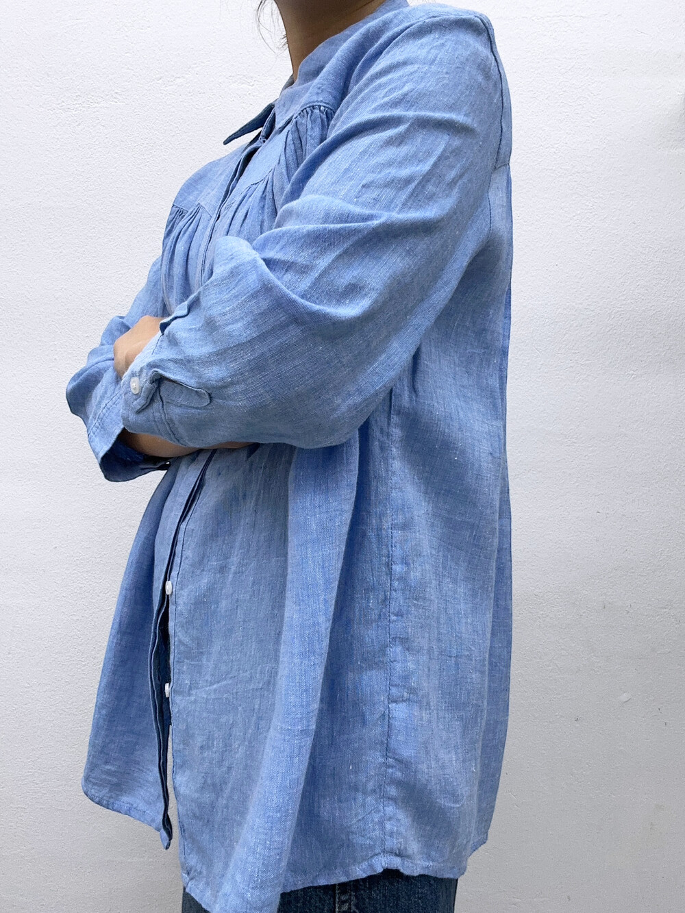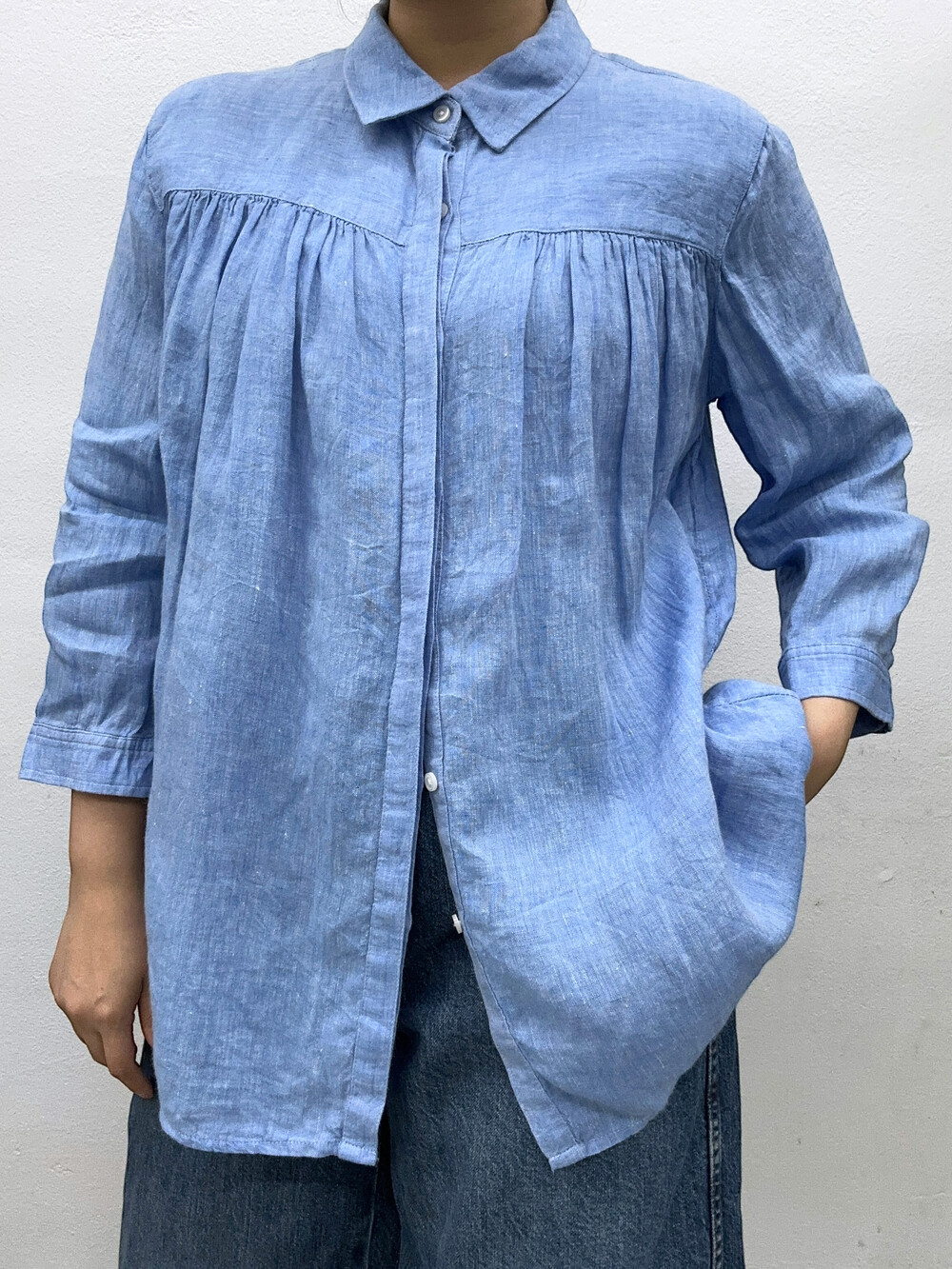 하늘색의 멋스러운 린넨 100% 소재며