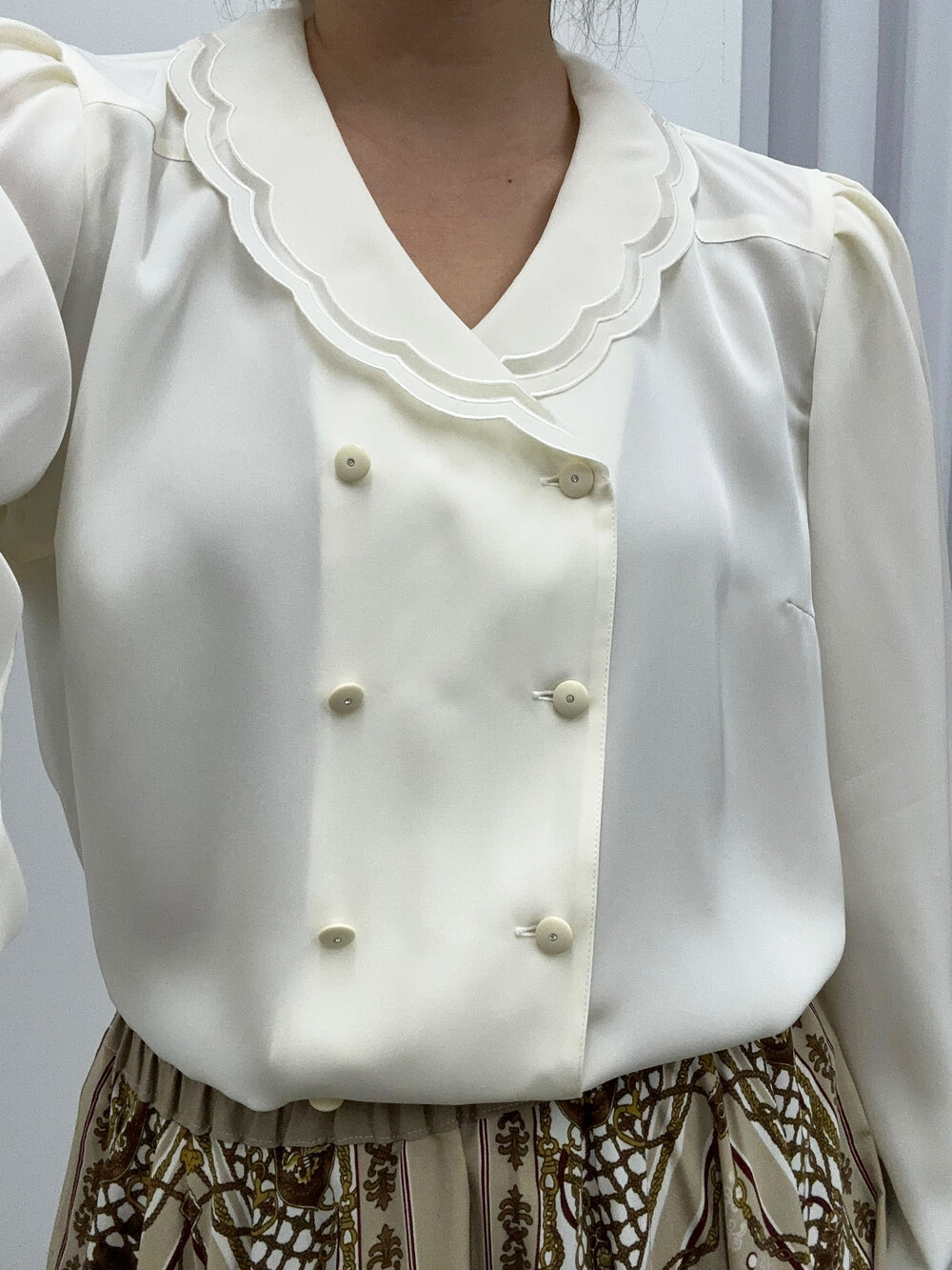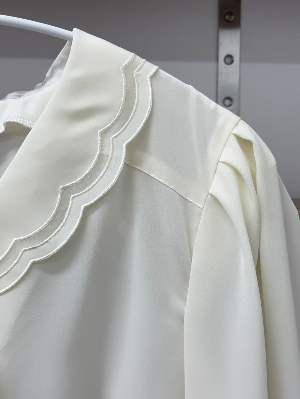 특히 넥라인과 소매 디테일이 귀엽습니다.