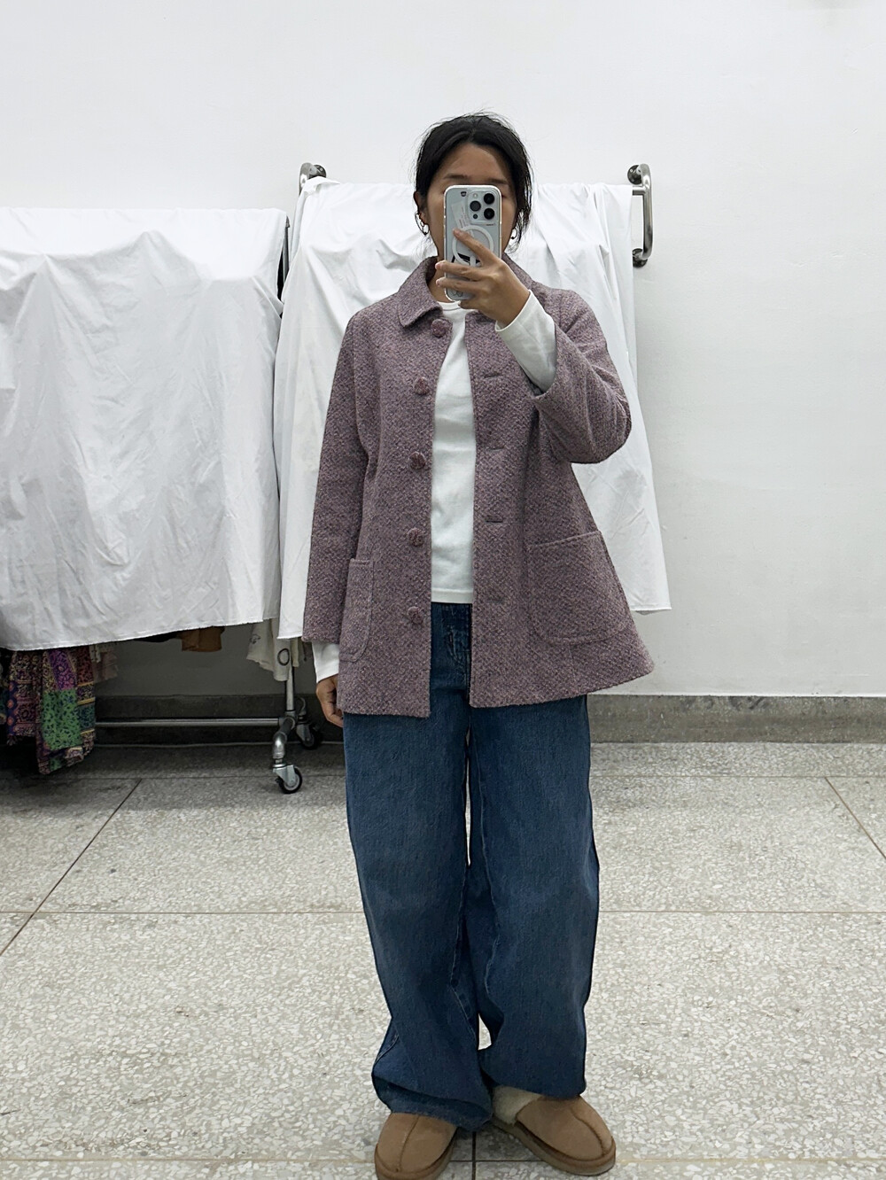 여성 S사이즈로 추천드립니다. 일부 단추 모양 눌림 있습니다.