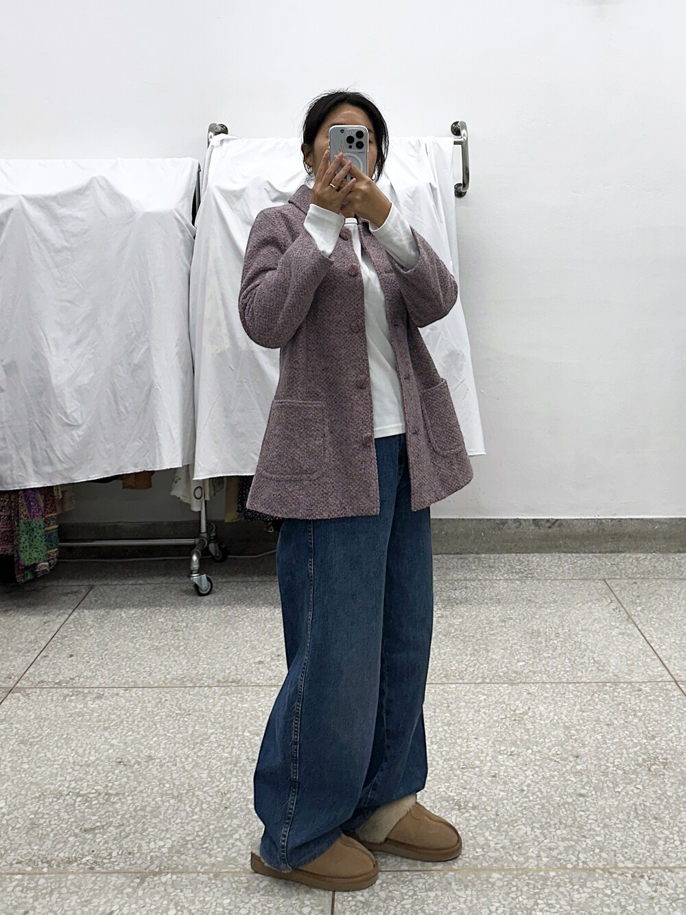 ♦ 아주 가끔 찍어올리는 착용샷 참고! 클짱은 155cm / 44반 55 / S사이즈 입니다.