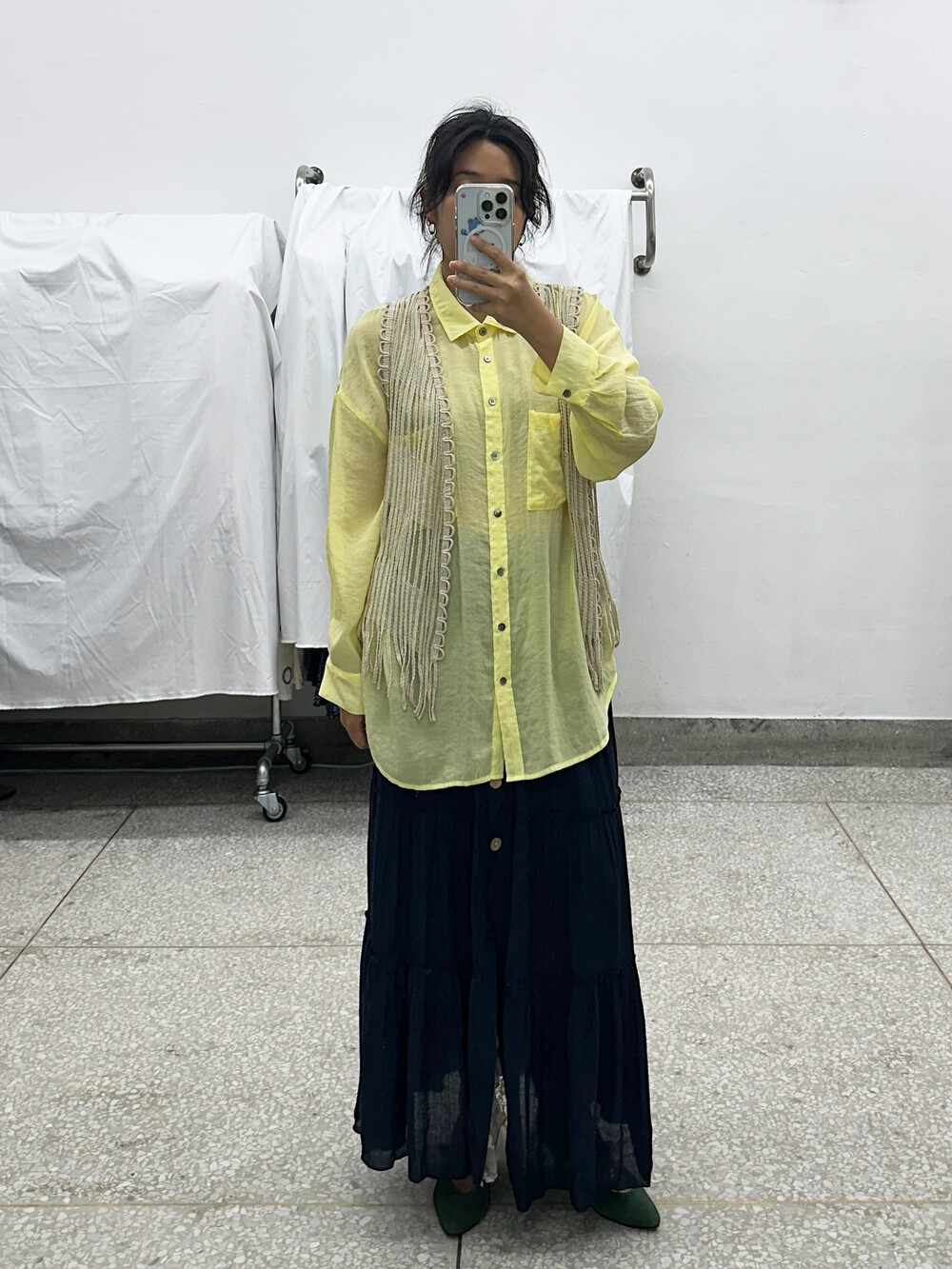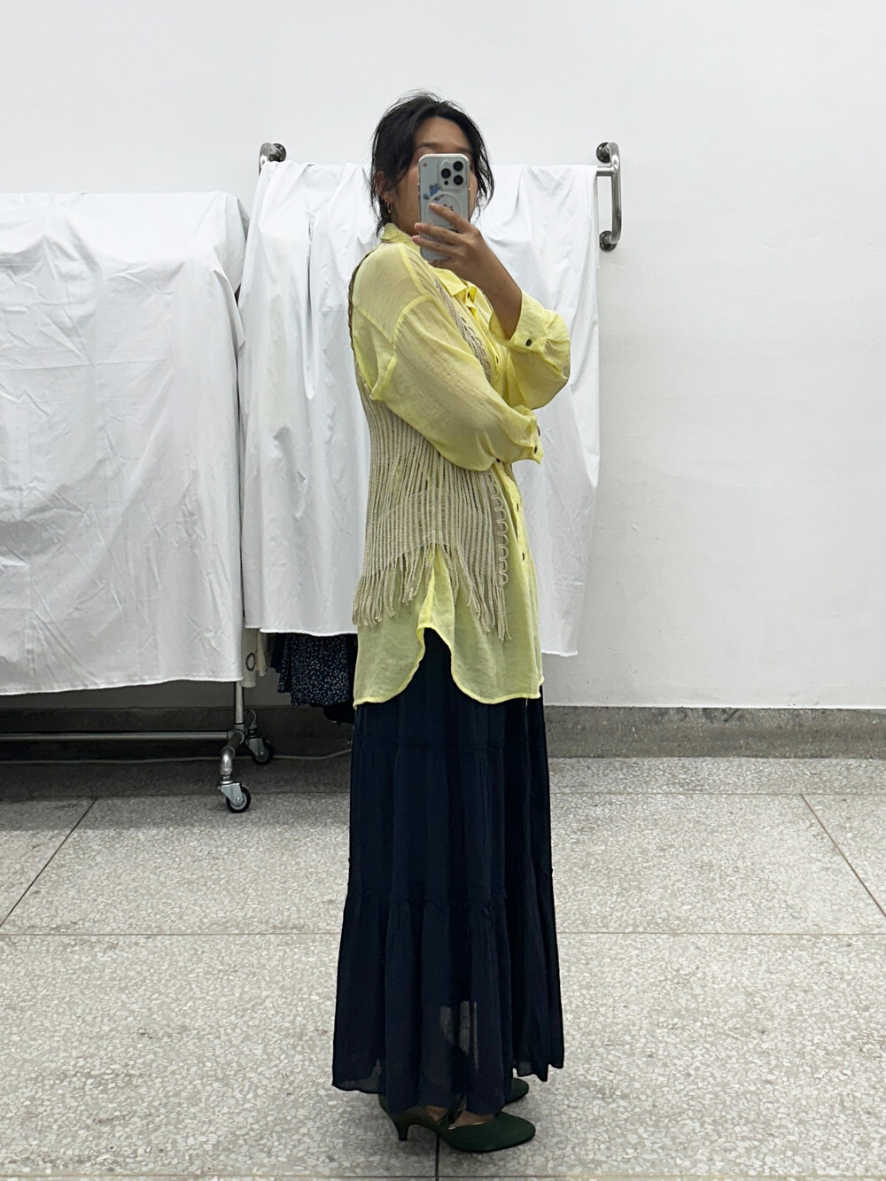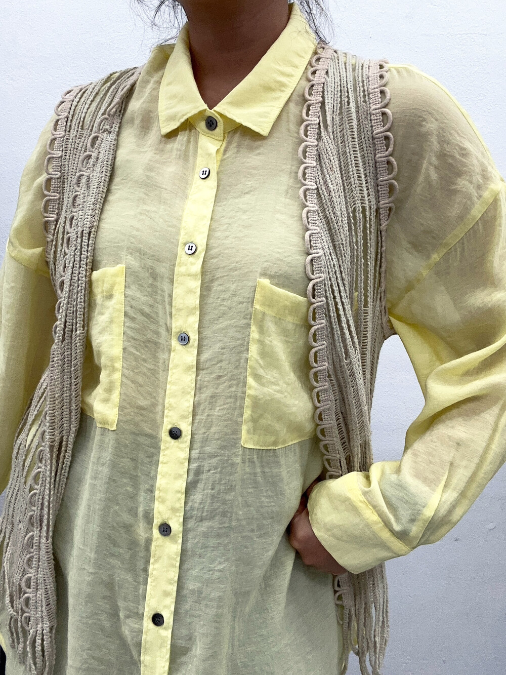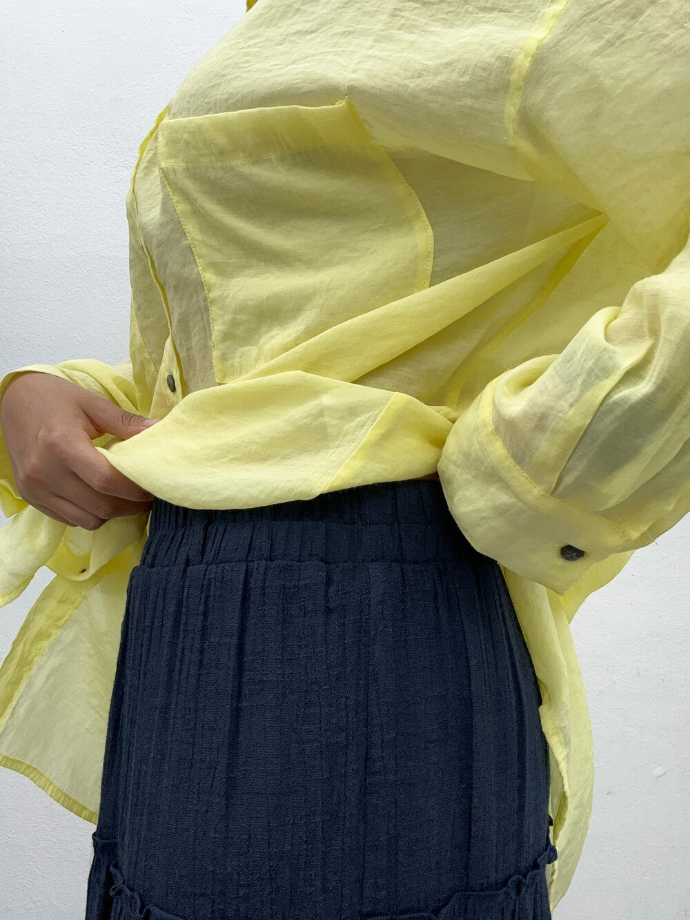 옅은 레몬색상의 셔츠입니다.