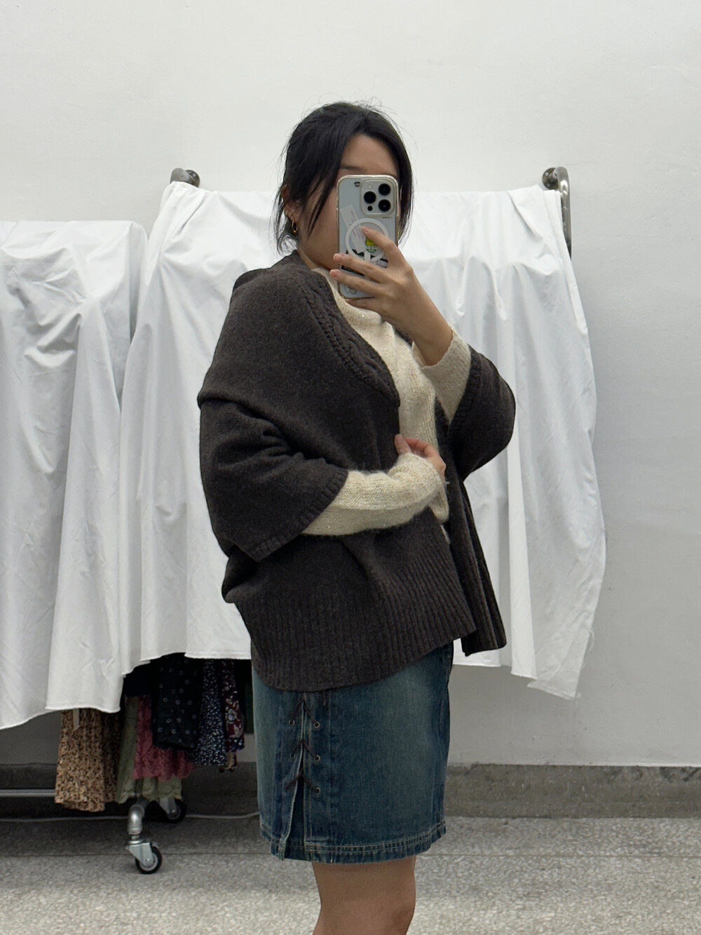 ♦ 아주 가끔 찍어올리는 착용샷 참고! 클짱은 155cm / 44반 55 / S사이즈 입니다.