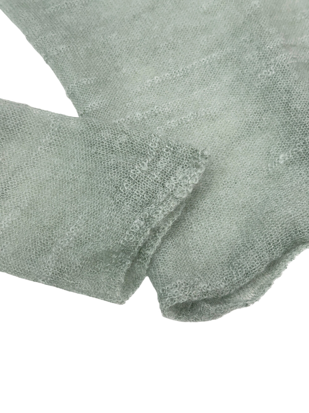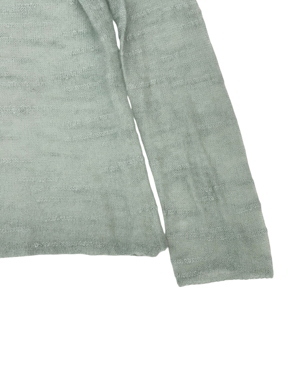 옅은 민트색감의 상의입니다.