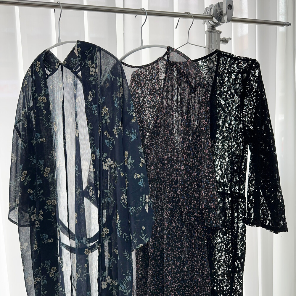 잔잔한 꽃패턴으로 가득한 로브 겸 원피스입니다.