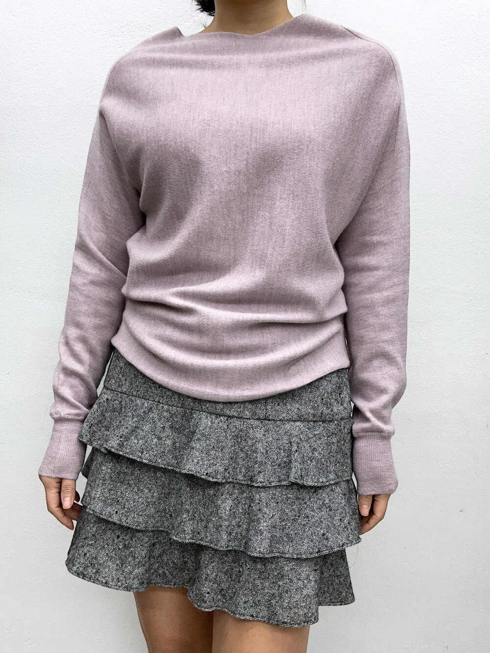 아주 옅은 분홍색의 니트입니다.