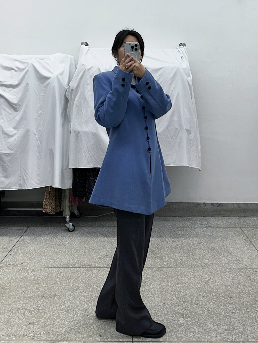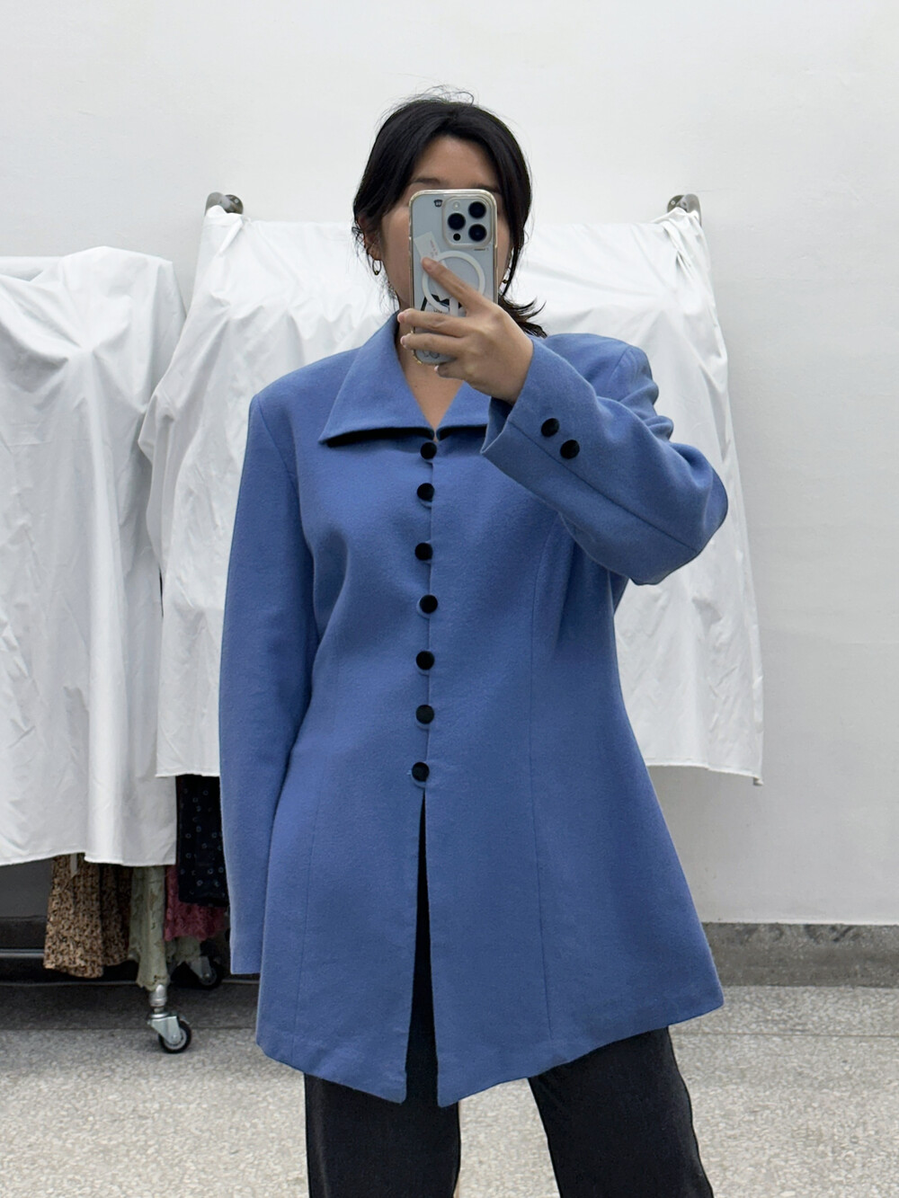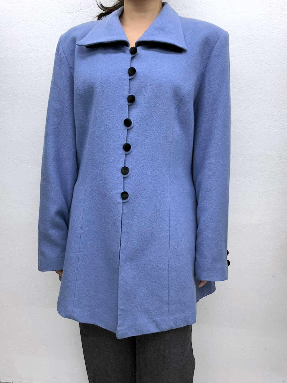 흐린 하늘색상의 외투 겸 상의 겸 원피스입니다.